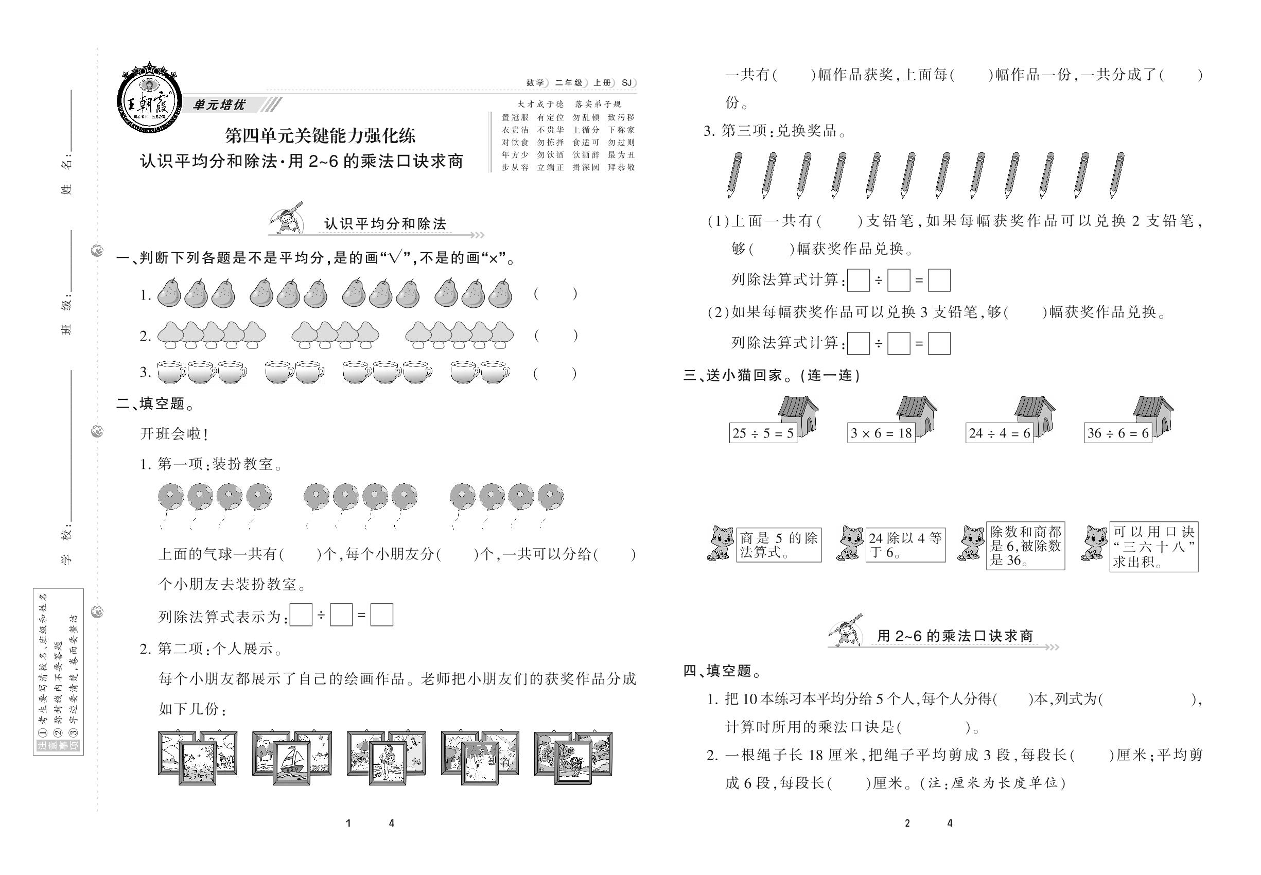 2020上册二年级数学苏教版 第四单元 关键能力强化练
