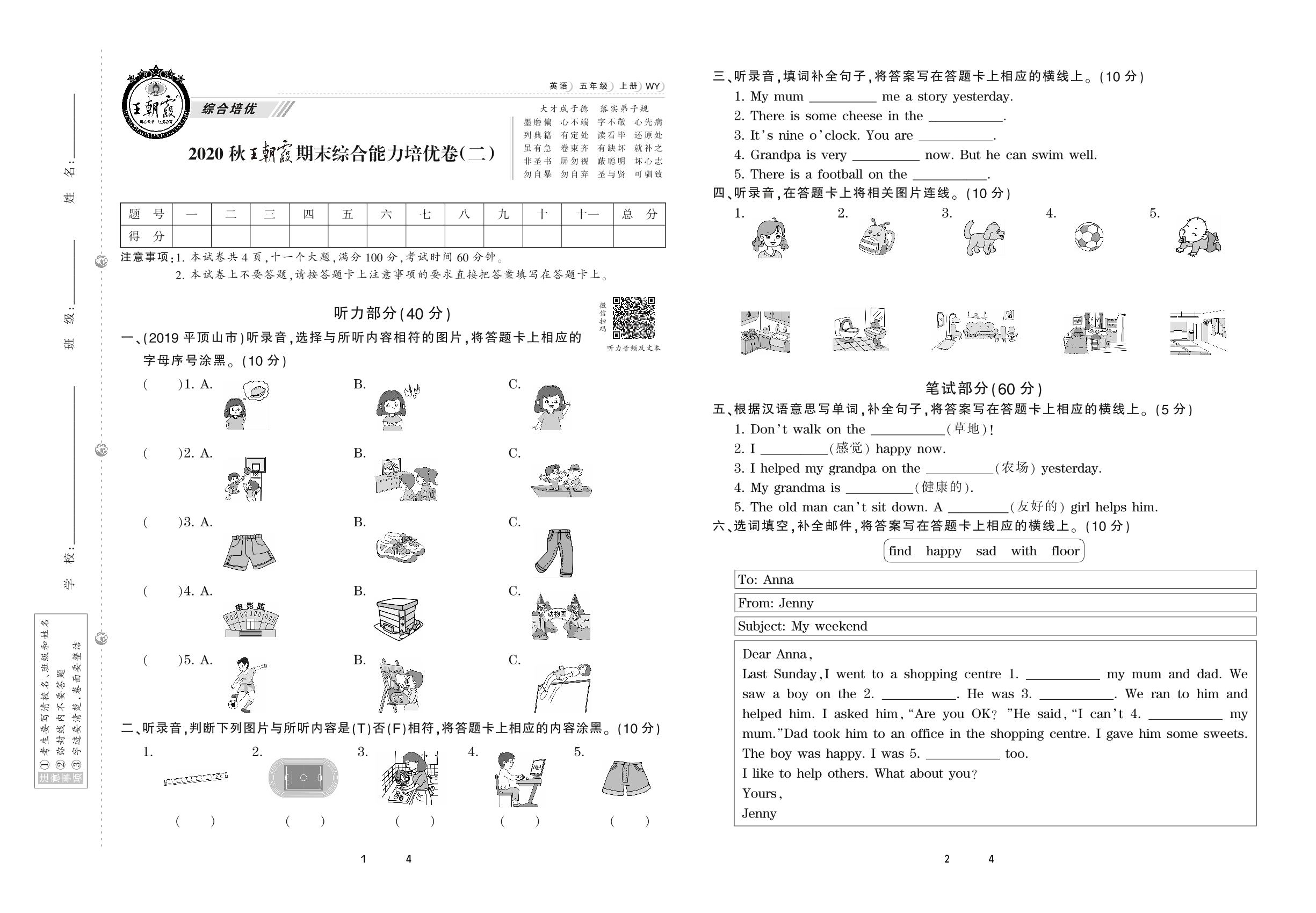 2020上册五年级英语外研版 王朝霞期末综合能力培优卷(二)