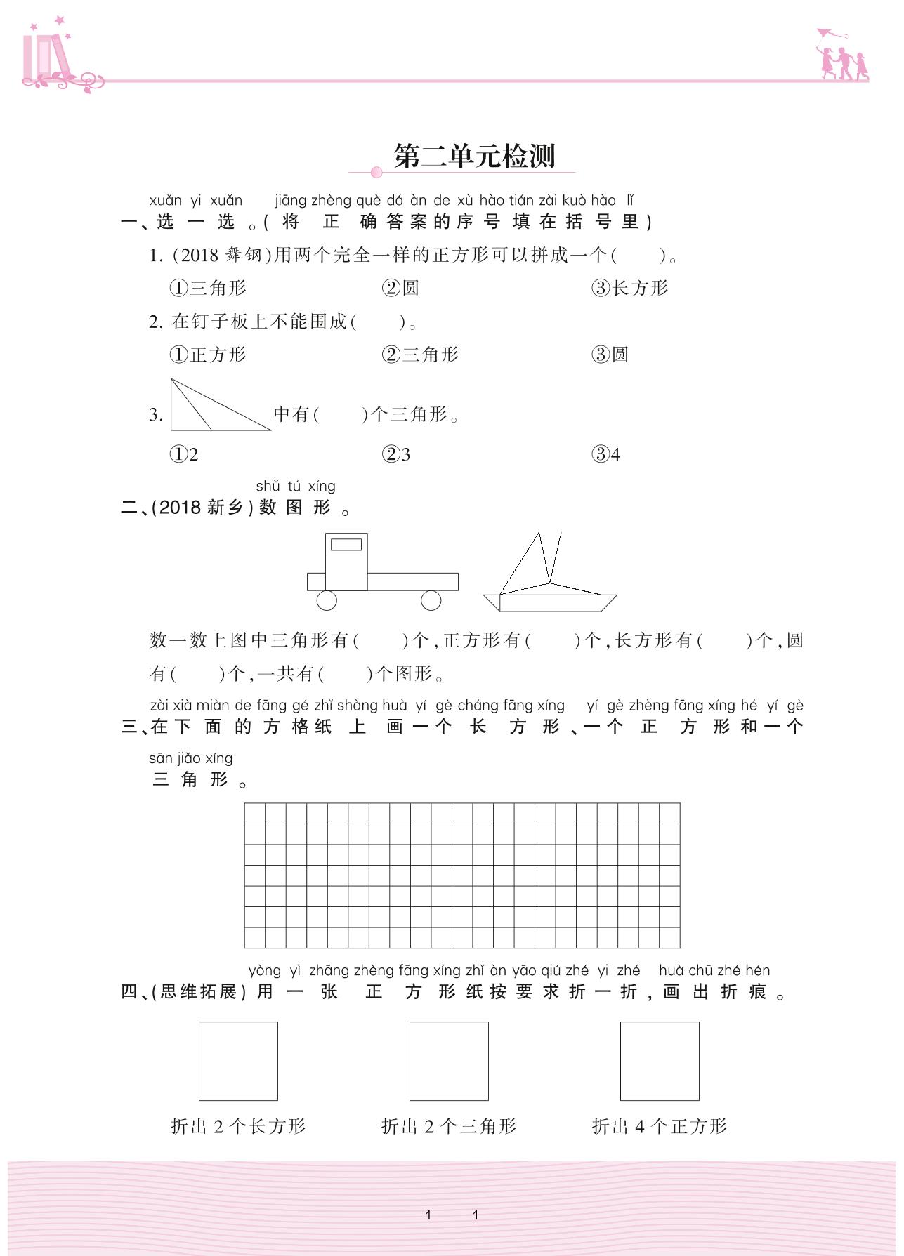 2021下册一年级数学苏教版 二 认识图形(二)——第二单元检测