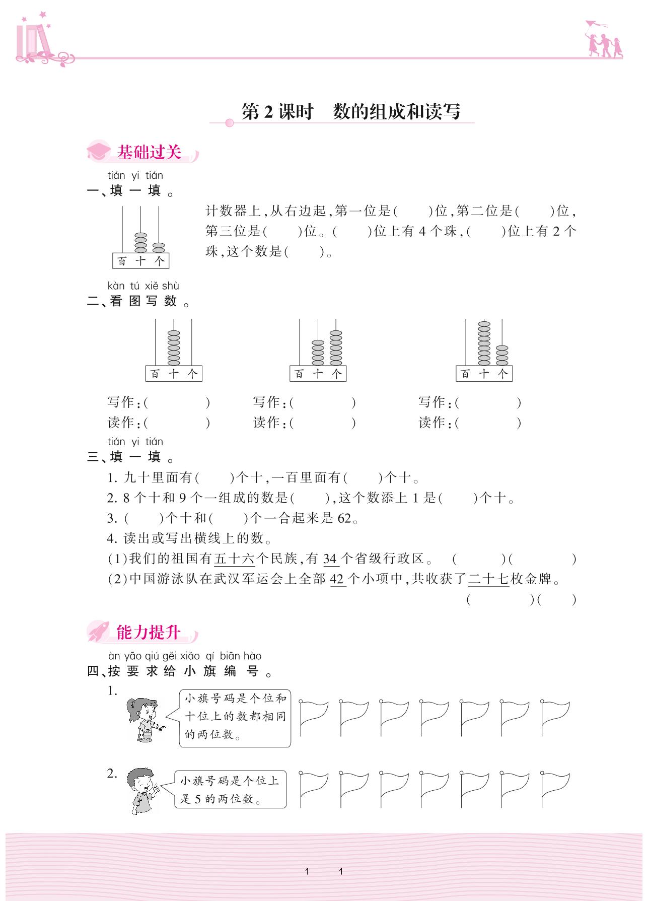 2021下册一年级数学苏教版 三 认识100以内的数——第2课时 数的组成和读写