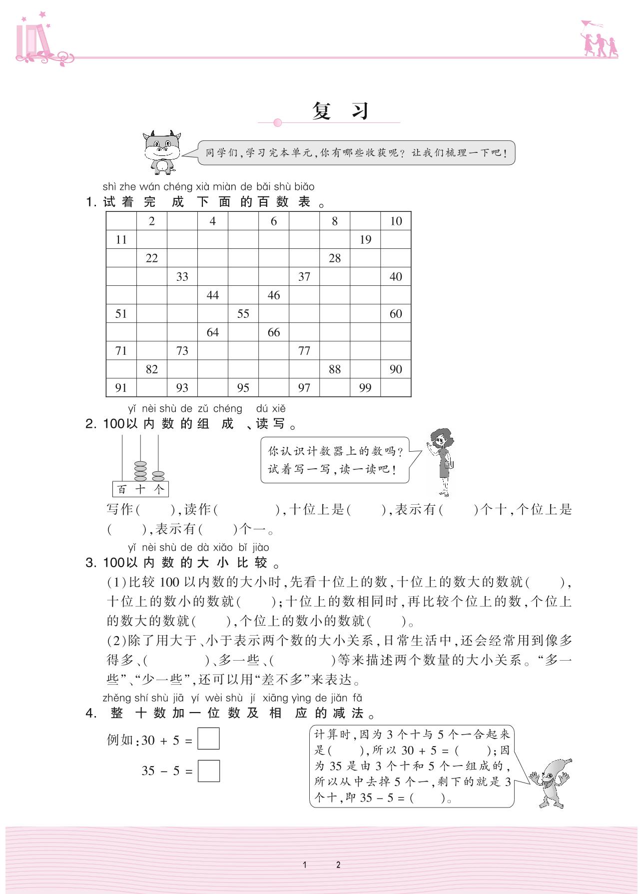 2021下册一年级数学苏教版 三 认识100以内的数——复习