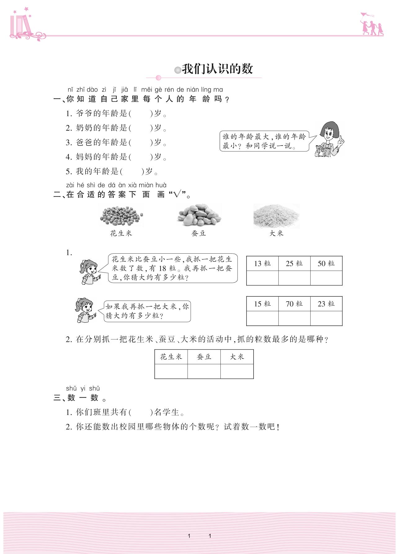 2021下册一年级数学苏教版 三 认识100以内的数——我们认识的数