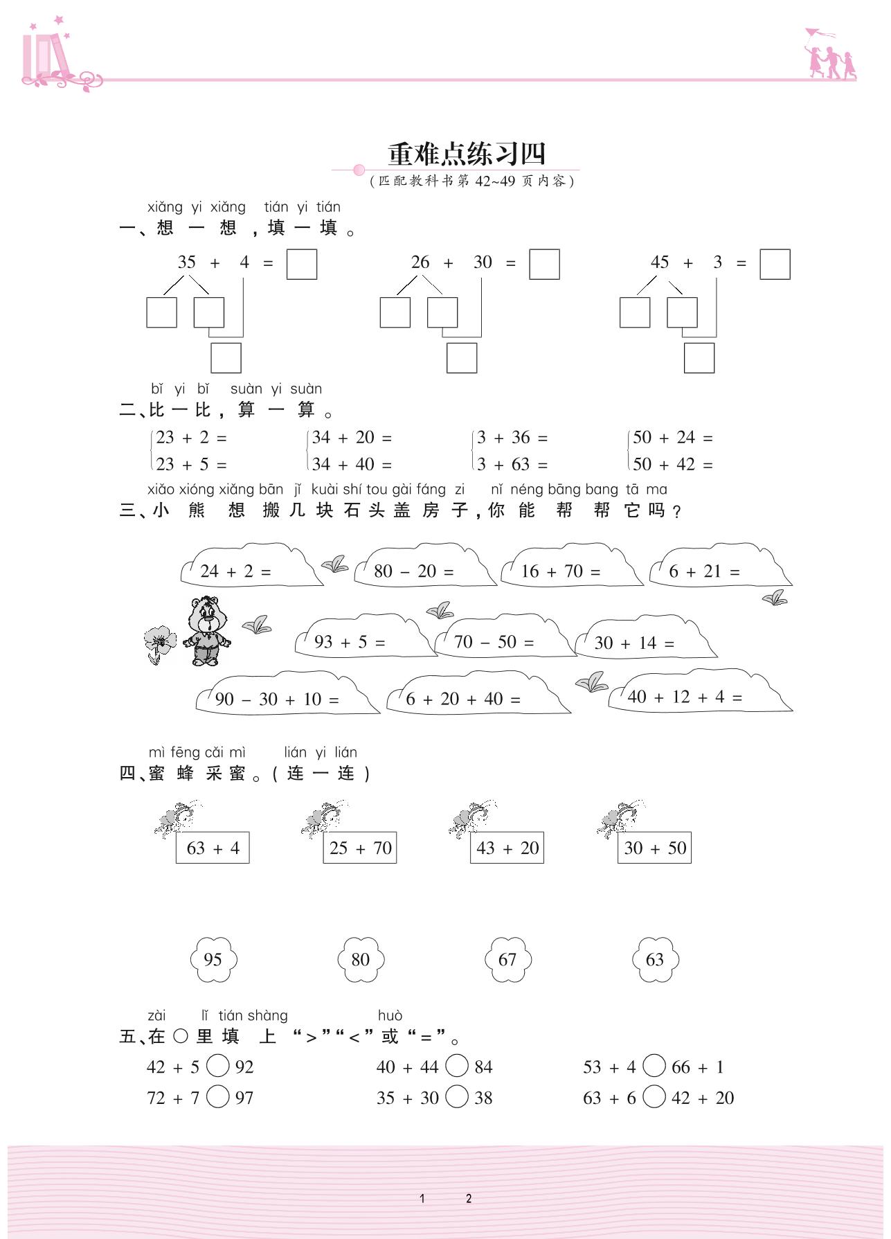 2021下册一年级数学苏教版 四 100以内的加法和减法(一)——重难点练习四
