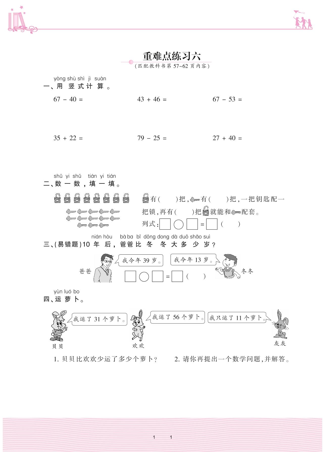 2021下册一年级数学苏教版 四 100以内的加法和减法(一)——重难点练习六
