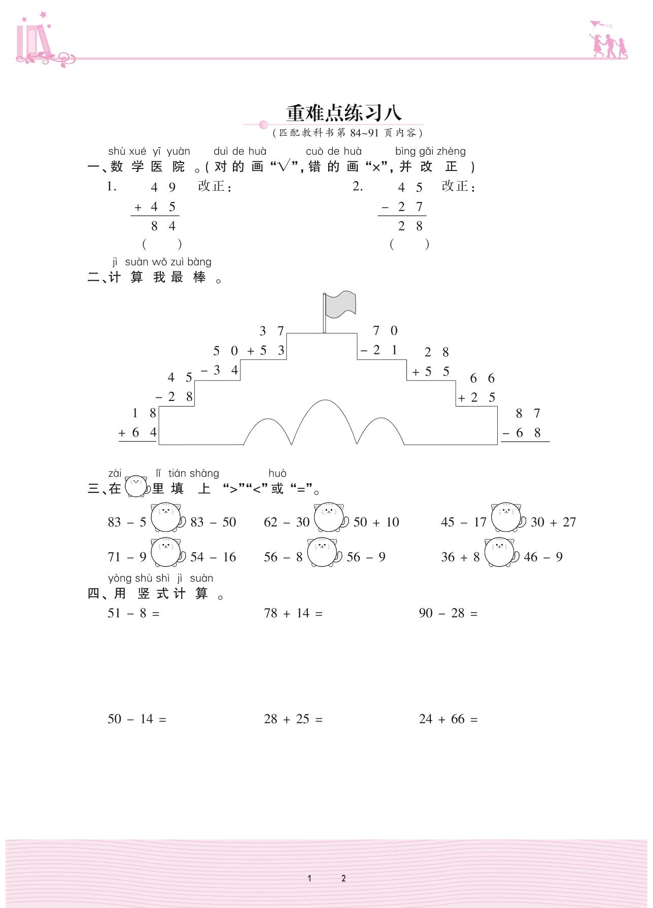 2021下册一年级数学苏教版 六 100以内的加法和减法(二)——重难点练习八
