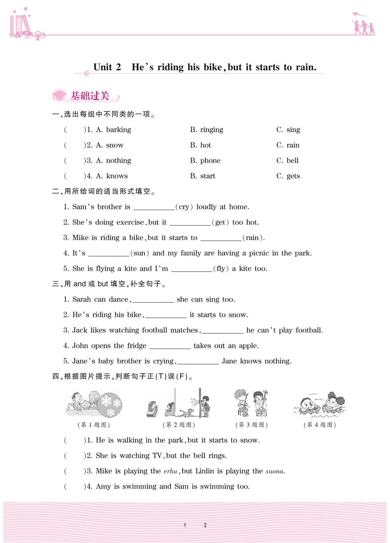 2021下册六年级英语外研版 Module 5—Unit 2 He’s riding his bike,but it starts to rain.