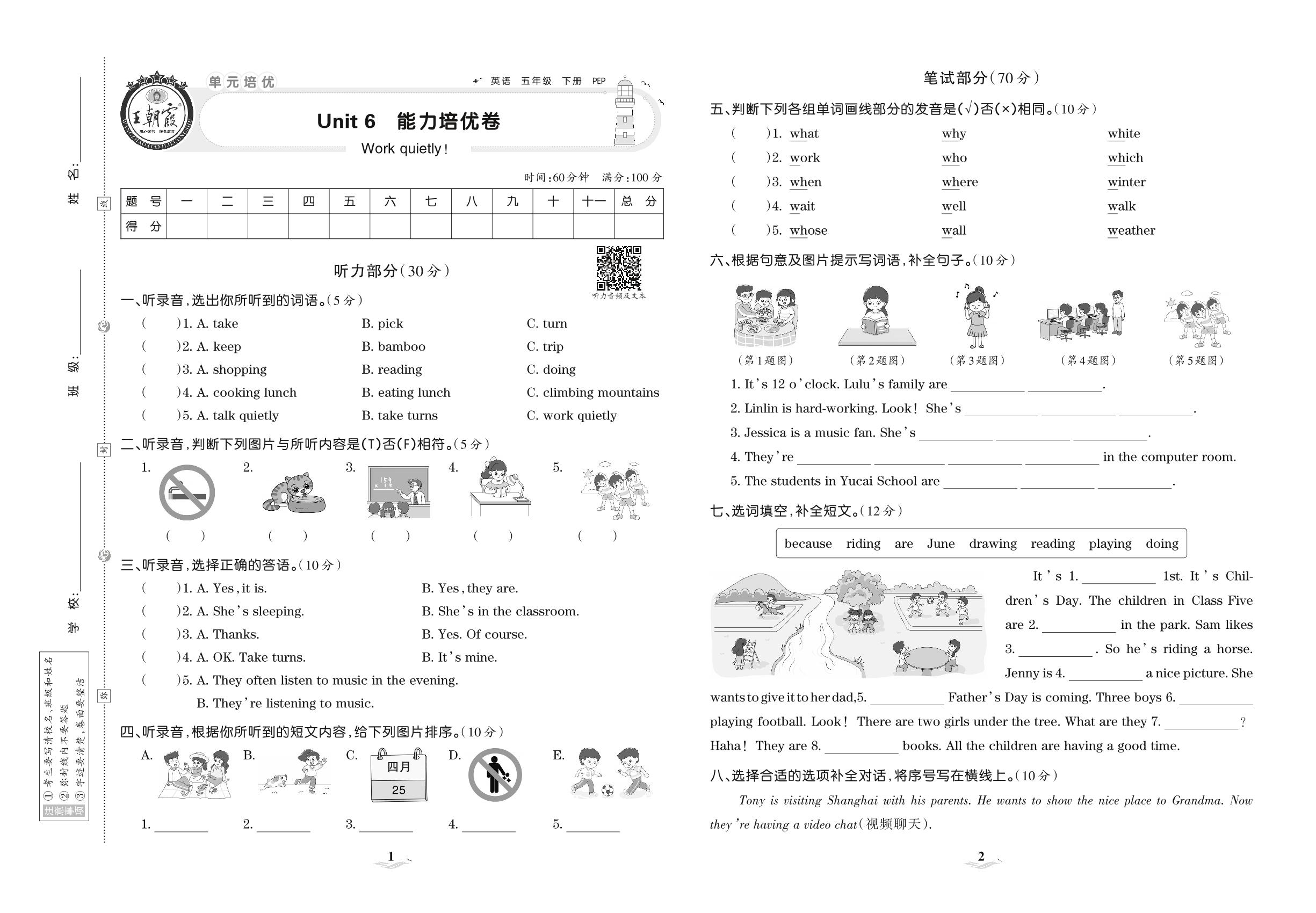 2021下册五年级英语PEP版 Unit 6 能力培优卷
