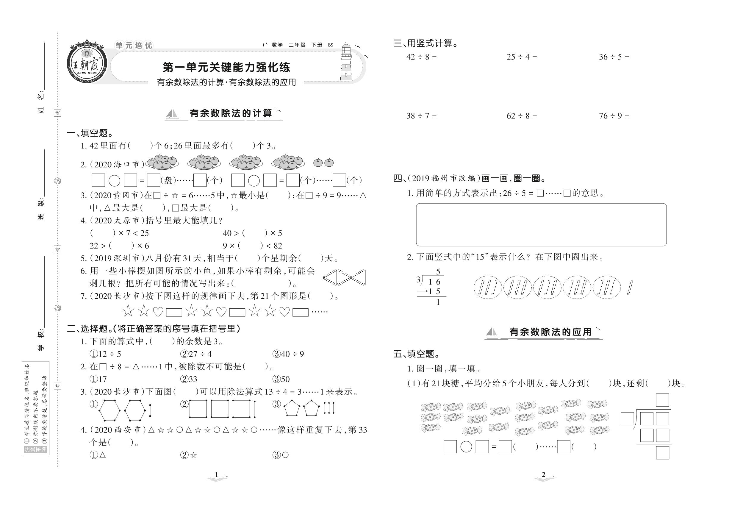2021下册二年级数学北师版 第一单元 关键能力强化练