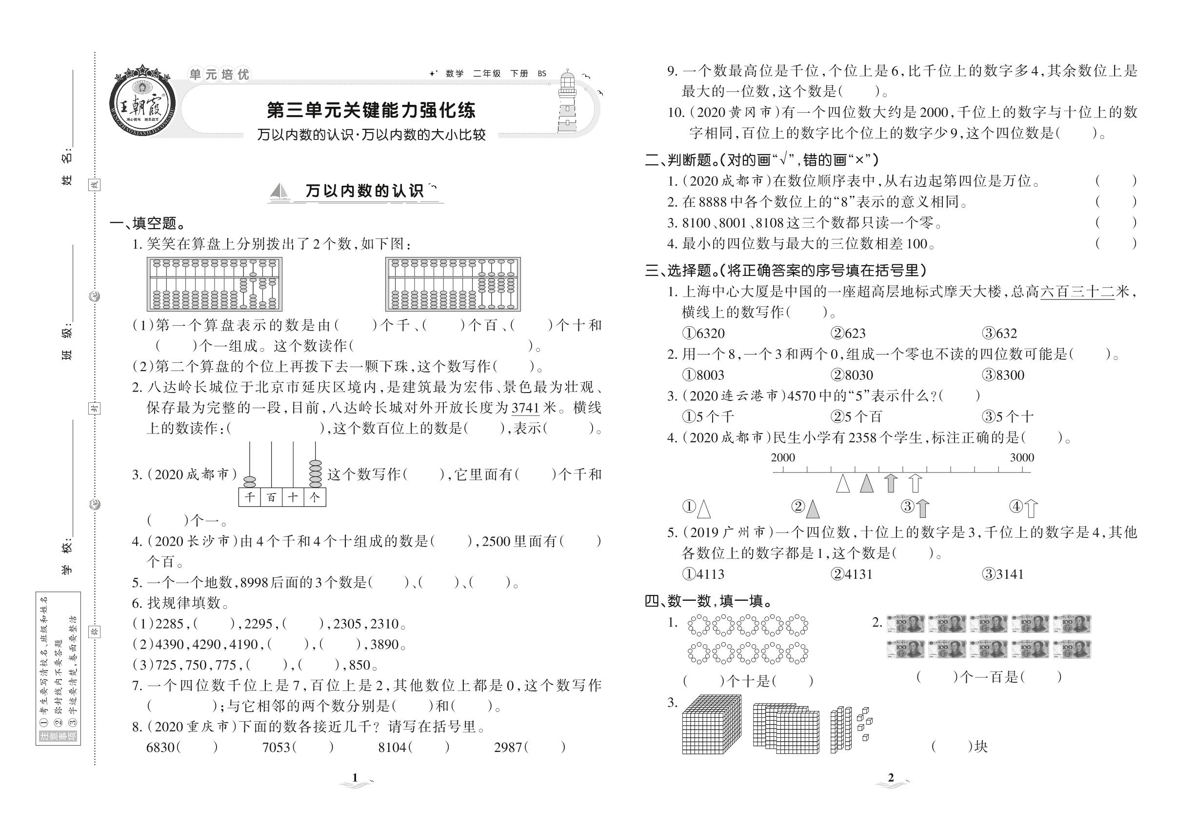 2021下册二年级数学北师版 第三单元 关键能力强化练