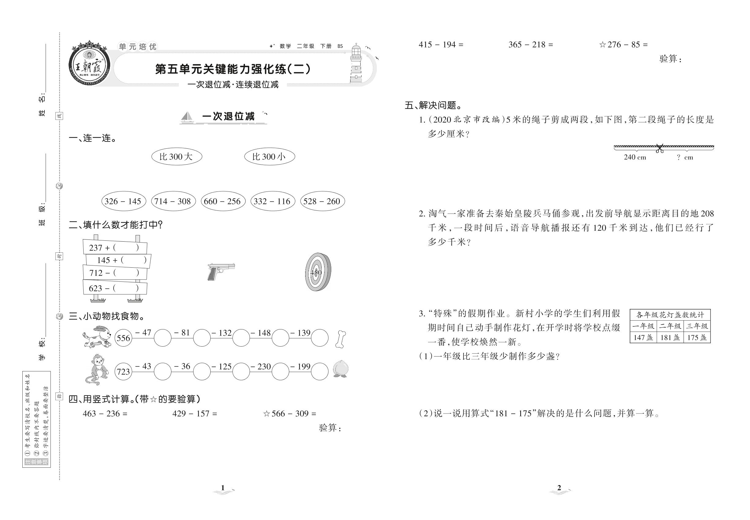 2021下册二年级数学北师版 第五单元 关键能力强化练(二)