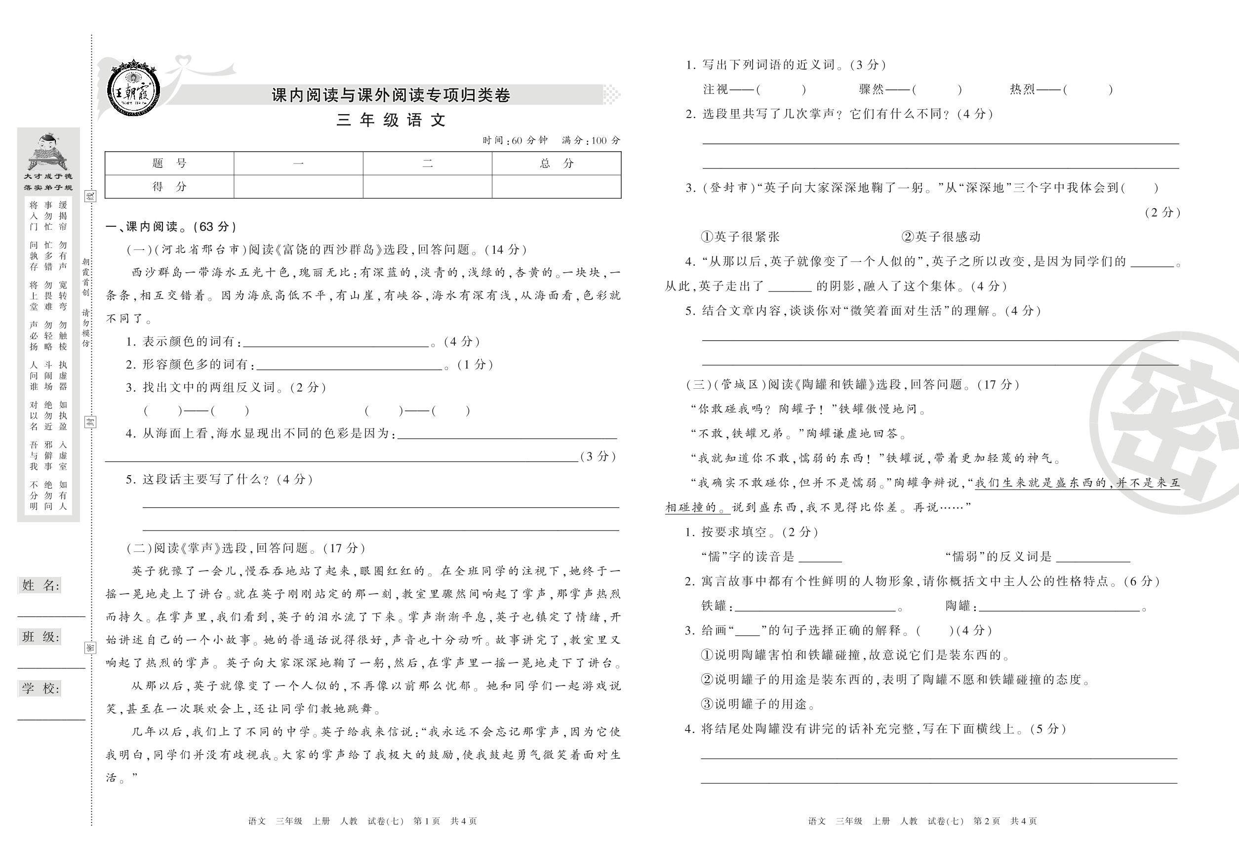 王朝霞期末专项卷三年级上册语文(人教版)_R210801101351【7】