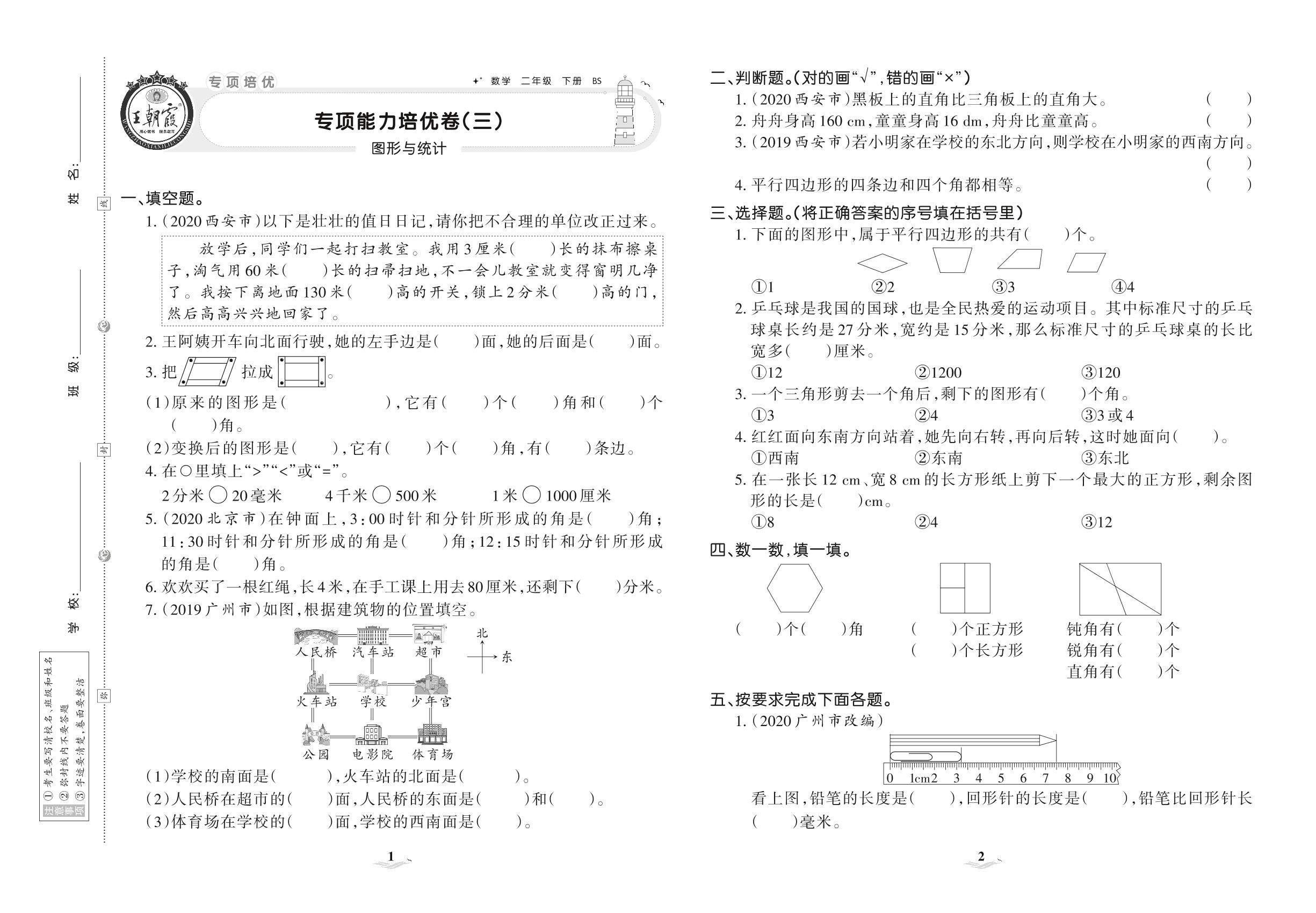 2021下册二年级数学北师版 专项能力培优卷(三) 图形与统计