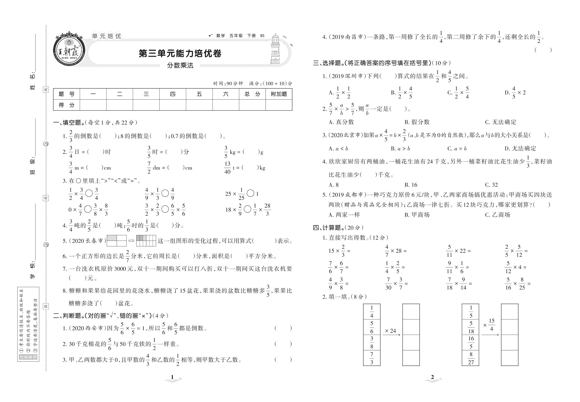 2021下册五年级数学北师版 第三单元 能力培优卷