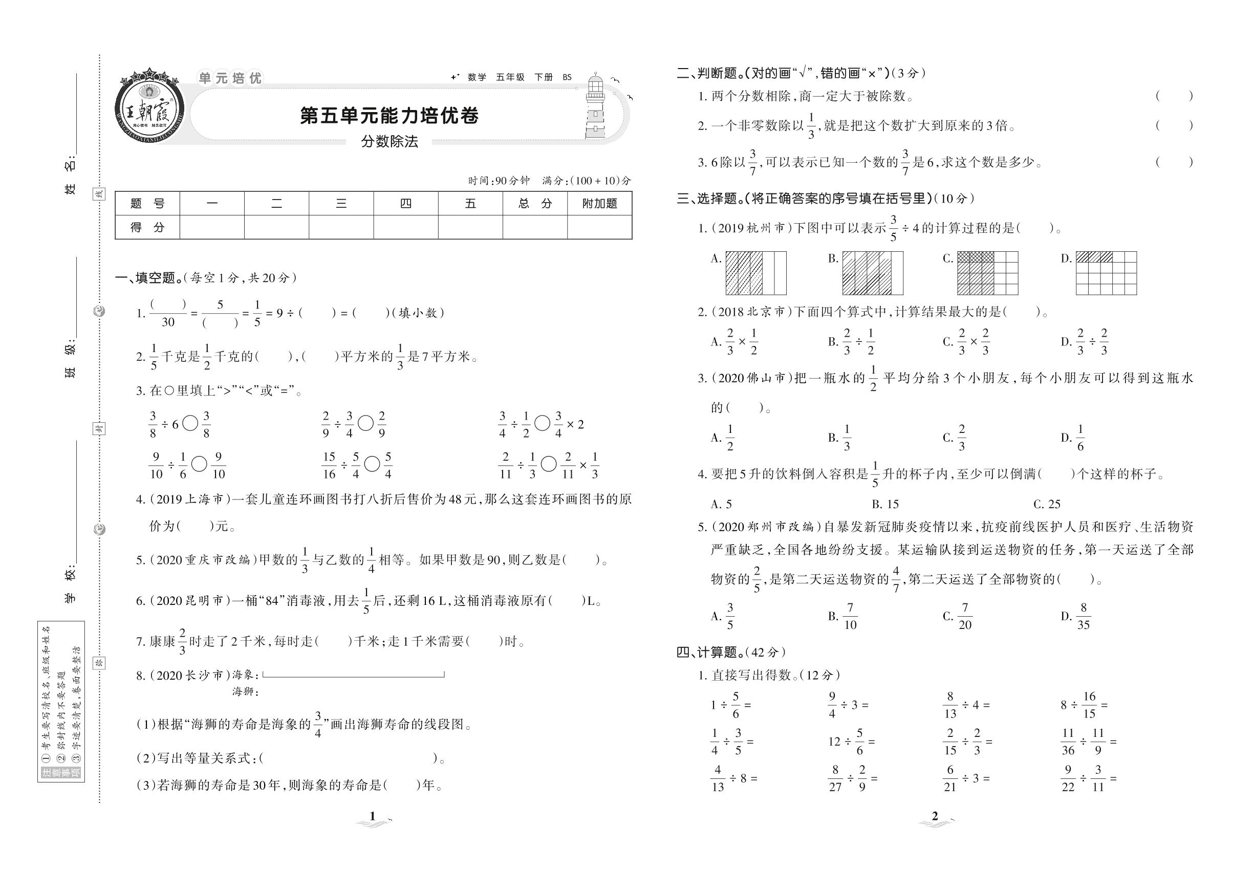 2021下册五年级数学北师版 第五单元 能力培优卷