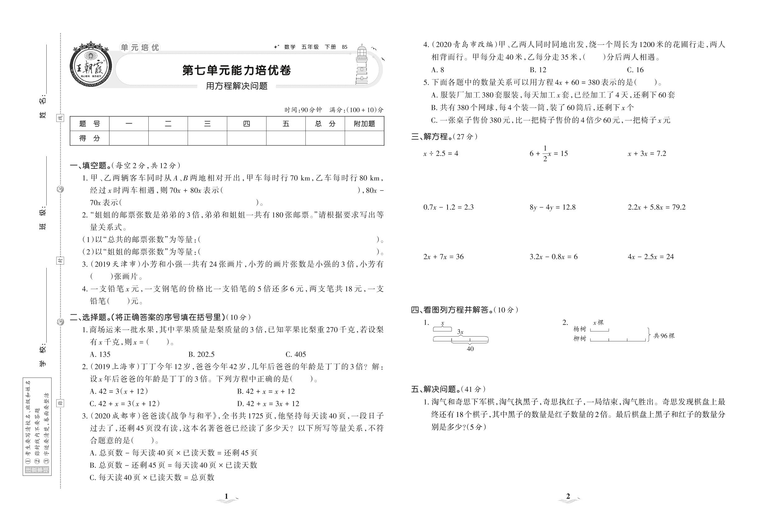 2021下册五年级数学北师版 第七单元 能力培优卷