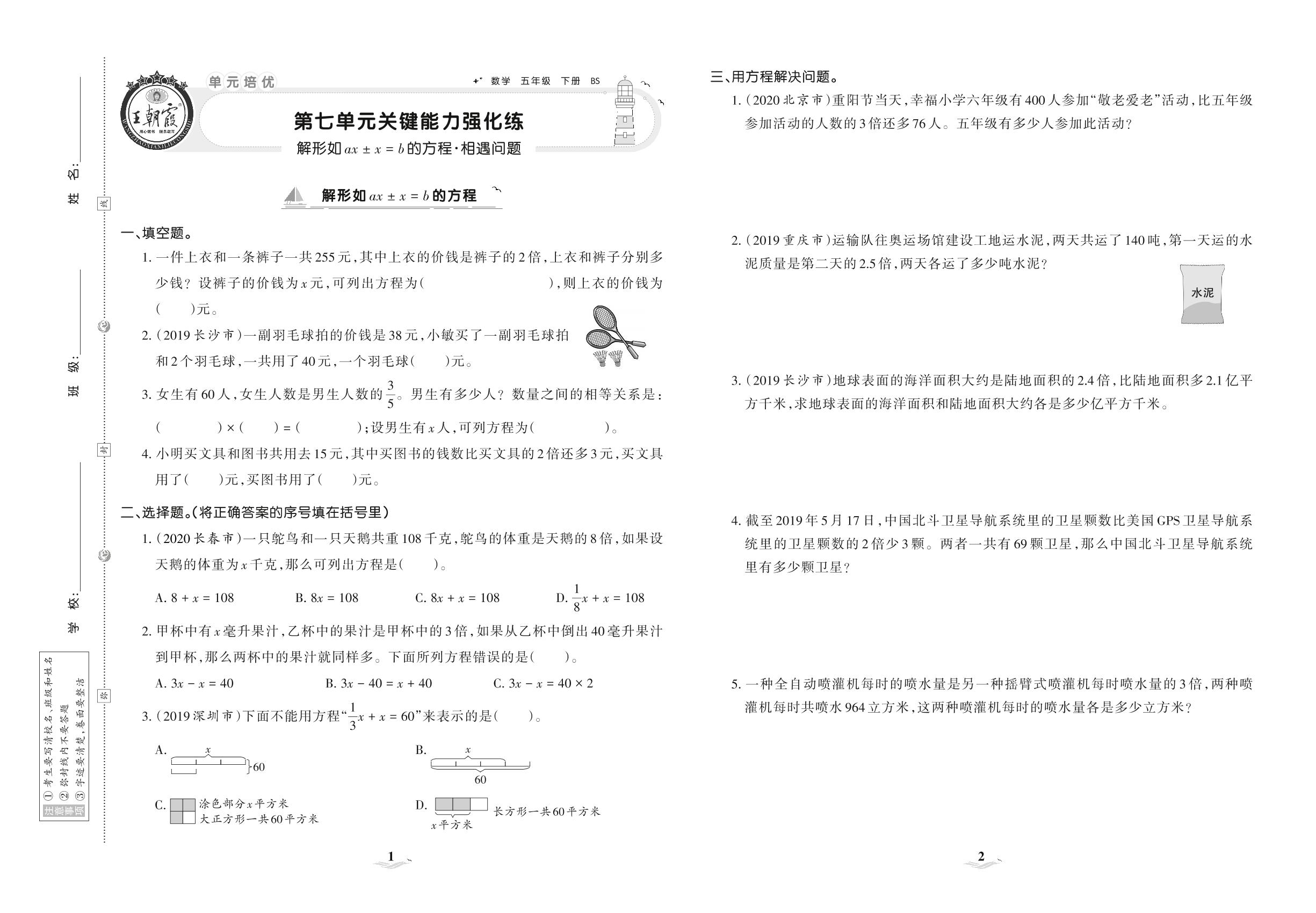 2021下册五年级数学北师版 第七单元 关键能力强化练