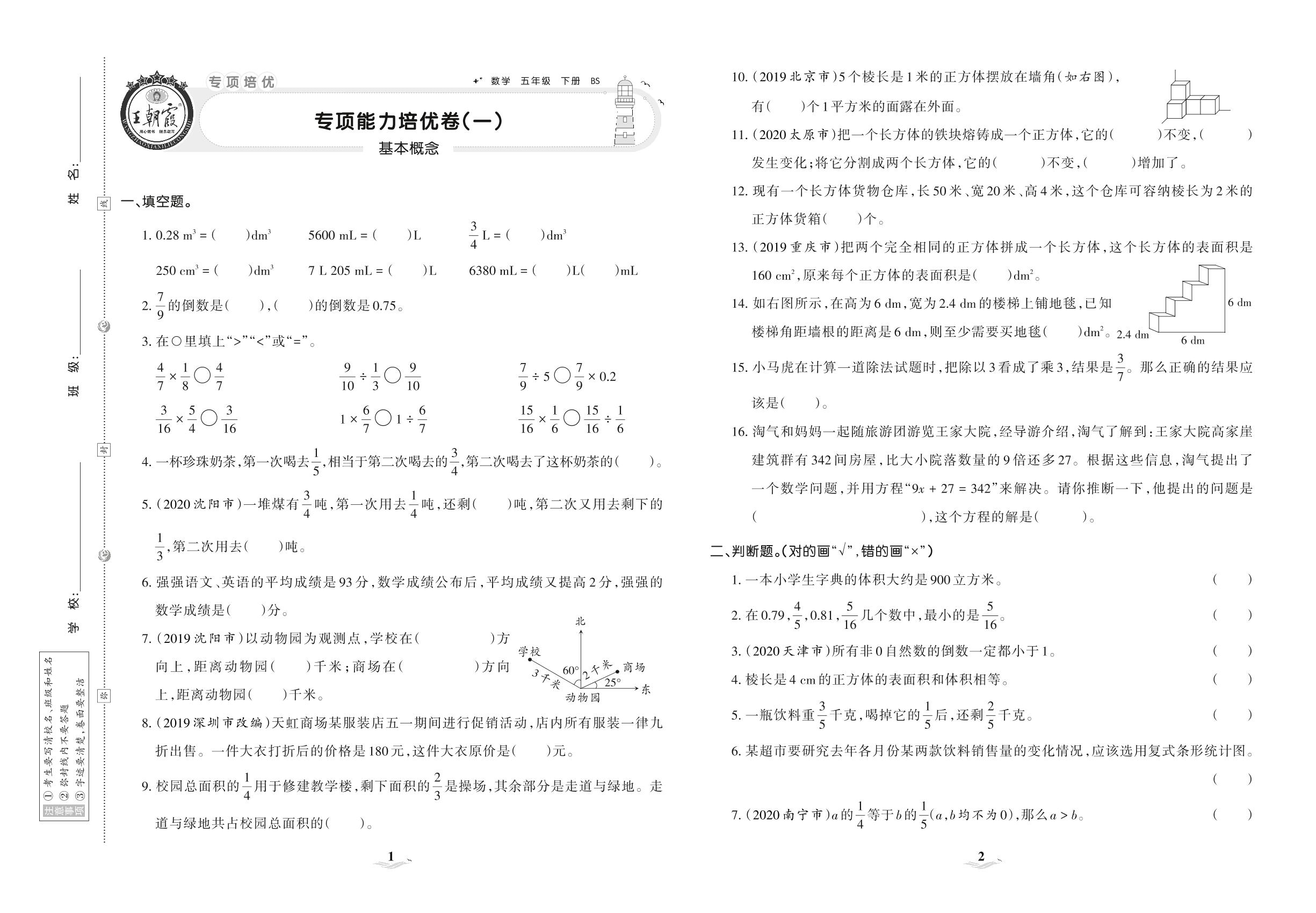 2021下册五年级数学北师版 专项能力培优卷(一) 基本概念
