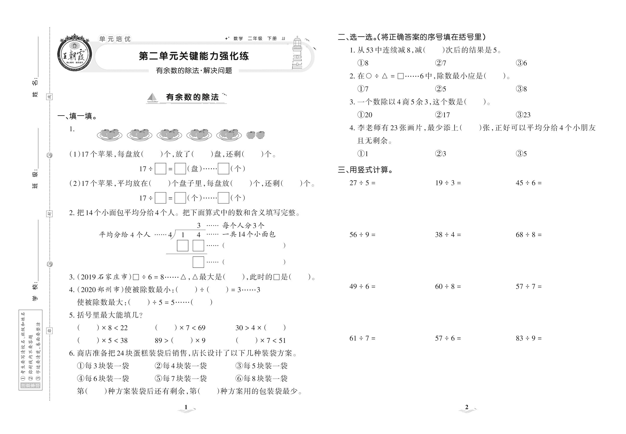 2021下册二年级数学冀教版 第二单元 关键能力强化练