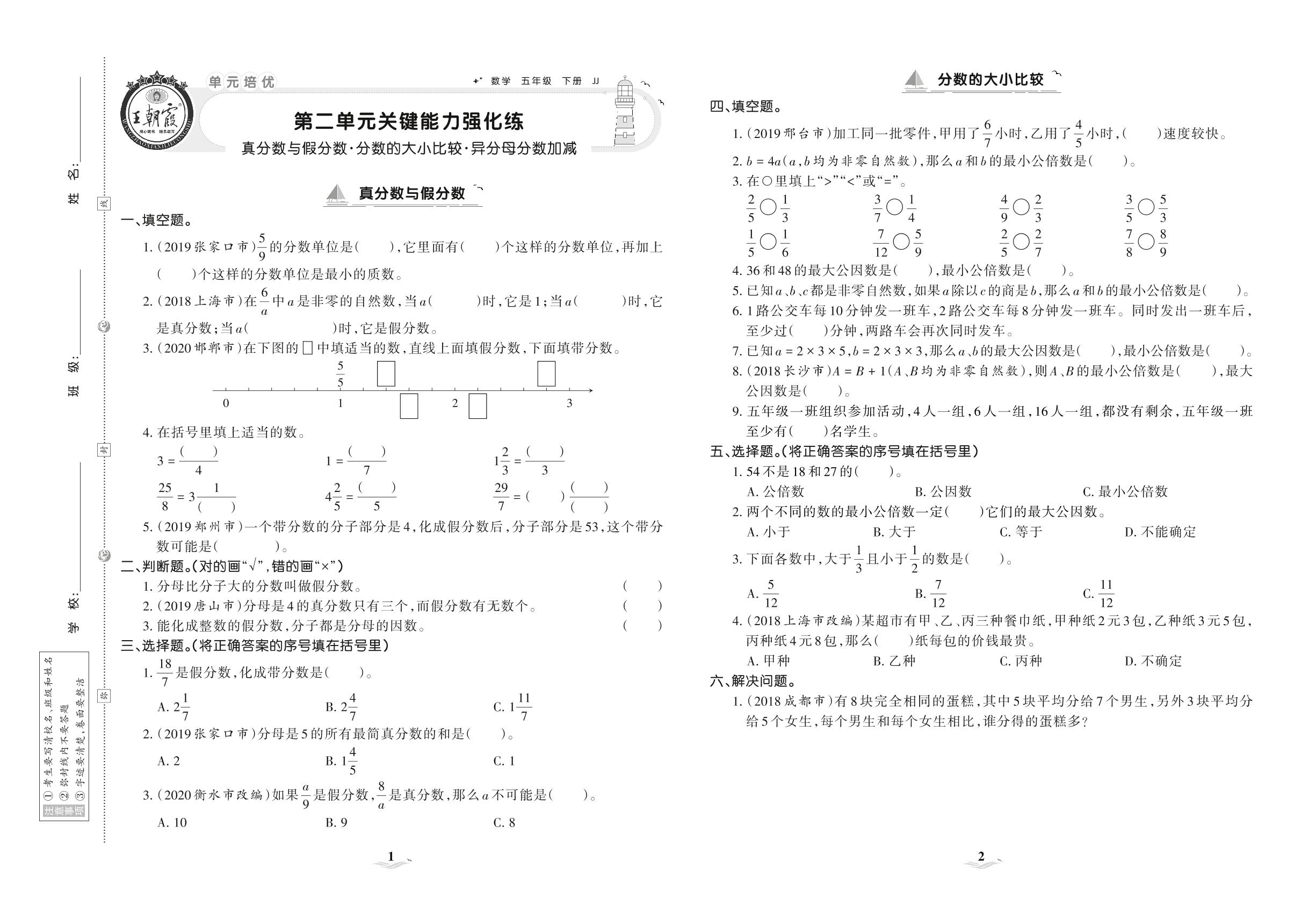 2021下册五年级数学冀教版 第二单元 关键能力强化练