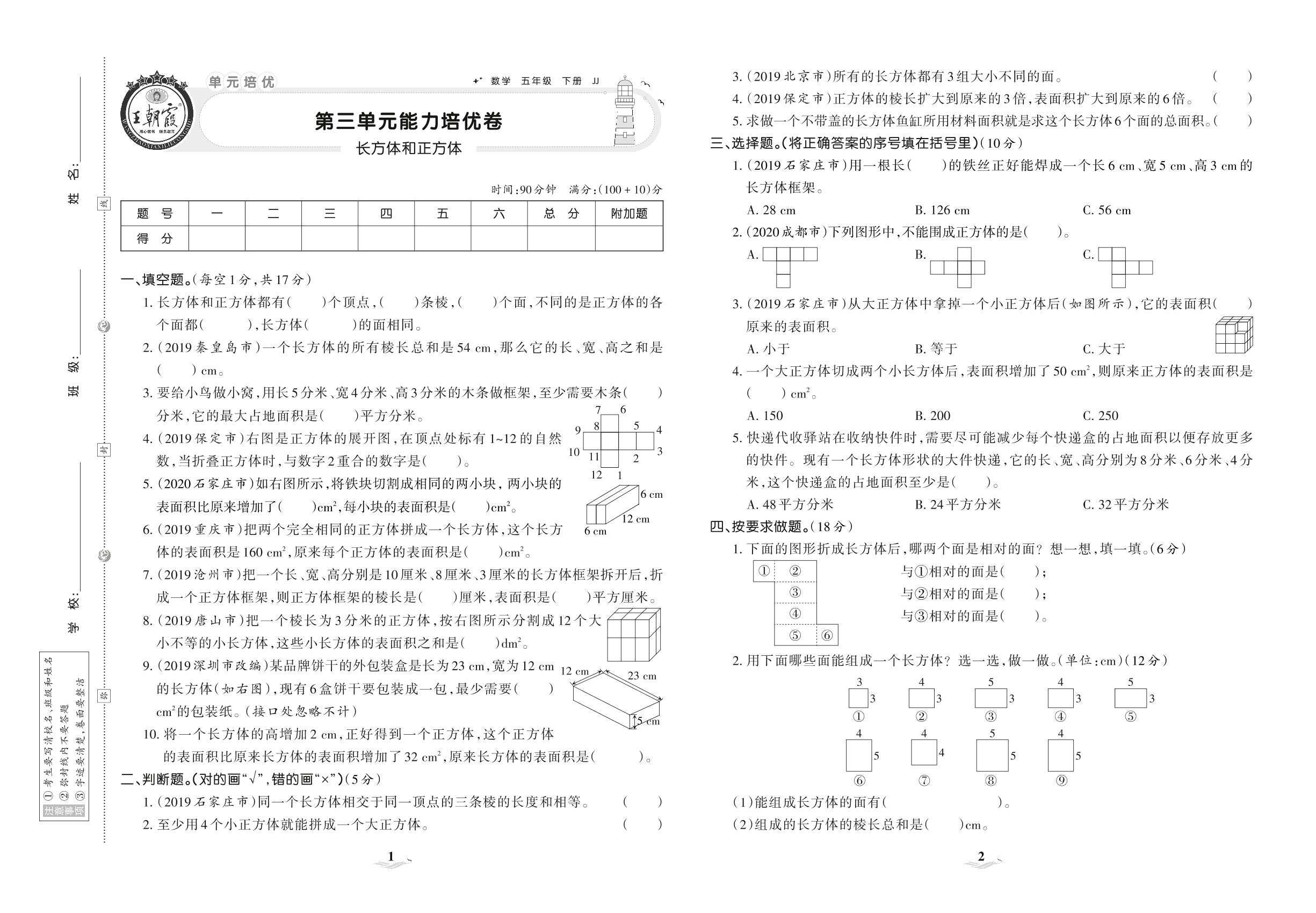 2021下册五年级数学冀教版 第三单元 能力培优卷