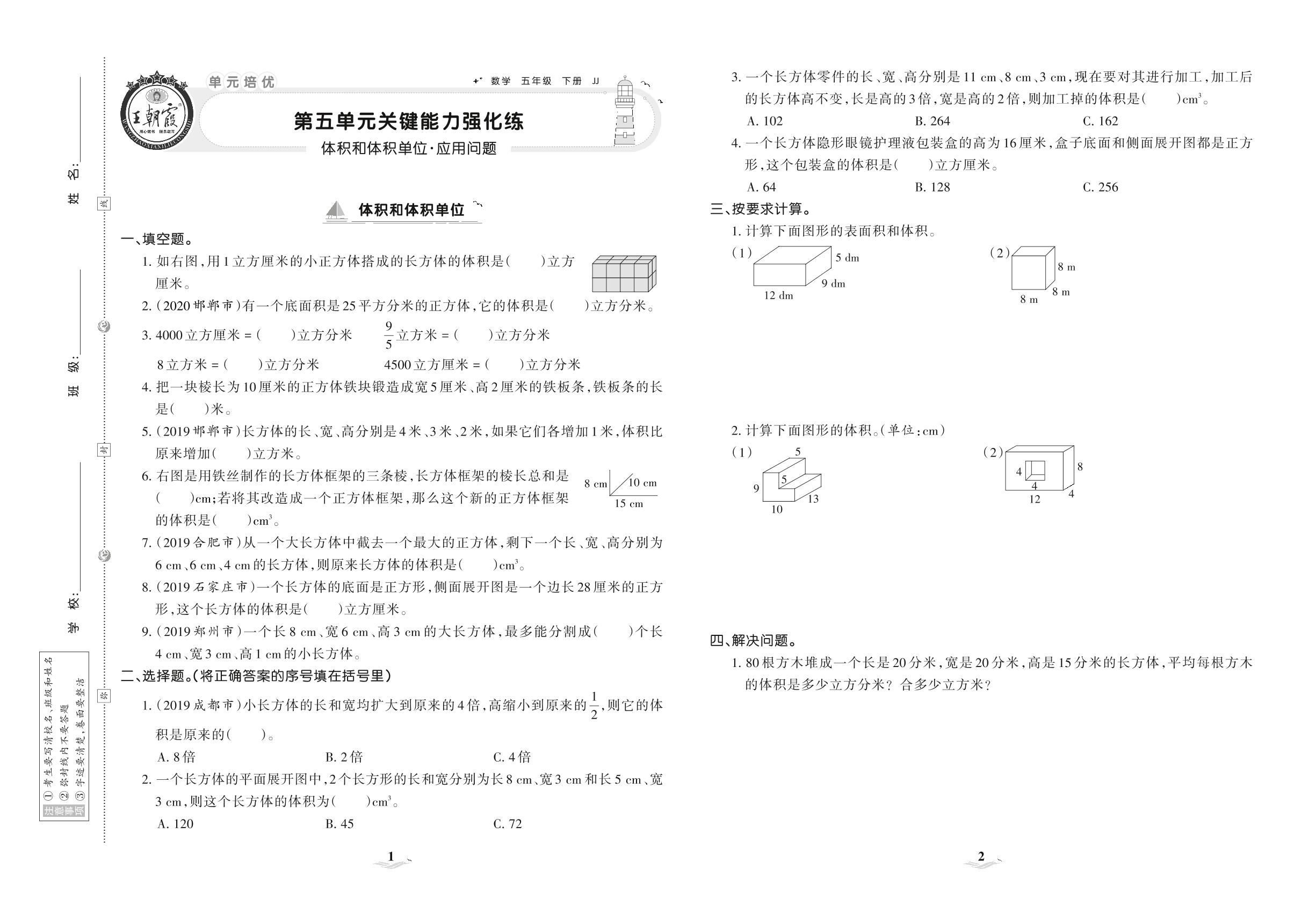 2021下册五年级数学冀教版 第五单元 关键能力强化练