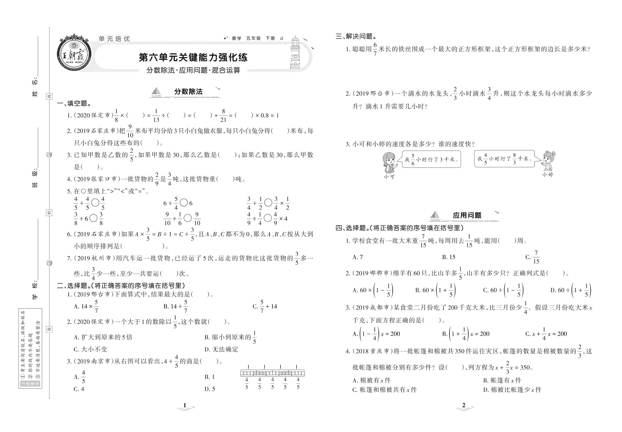 2021下册五年级数学冀教版 第六单元 关键能力强化练
