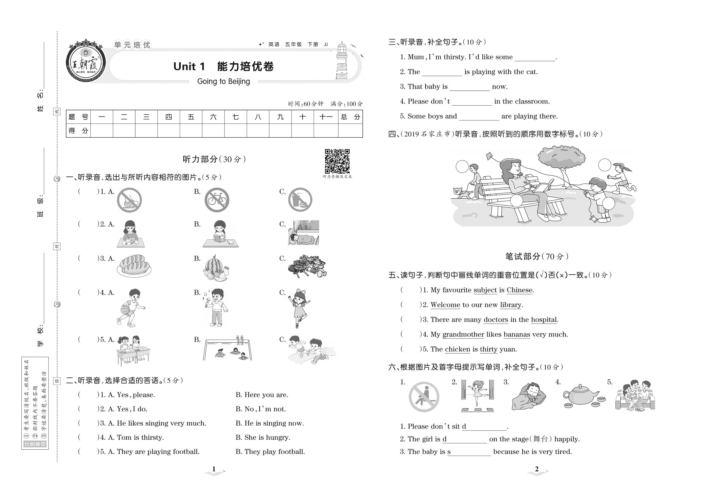 2021下册五年级英语冀教版 Unit 1 能力培优卷