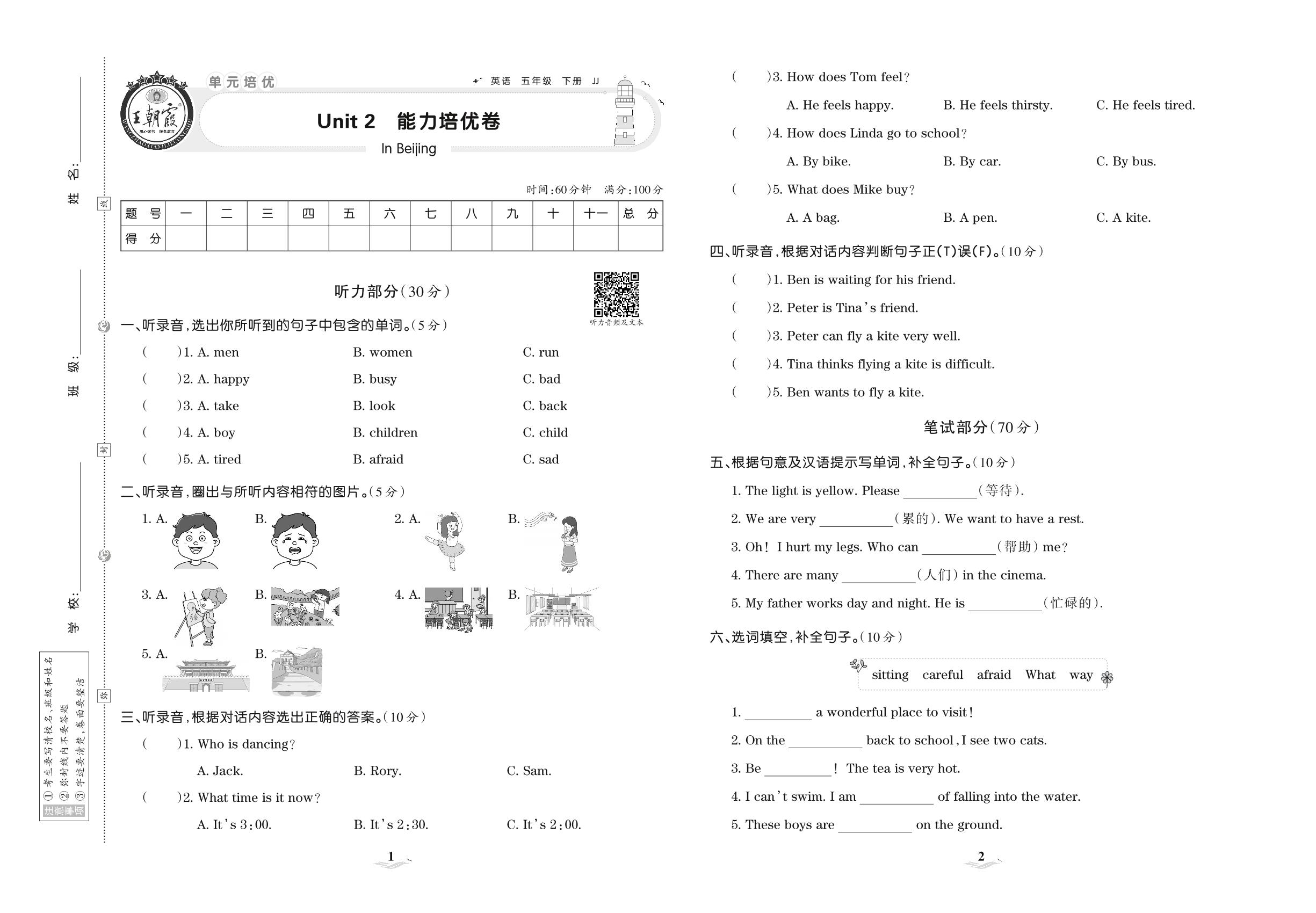 2021下册五年级英语冀教版 Unit 2 能力培优卷