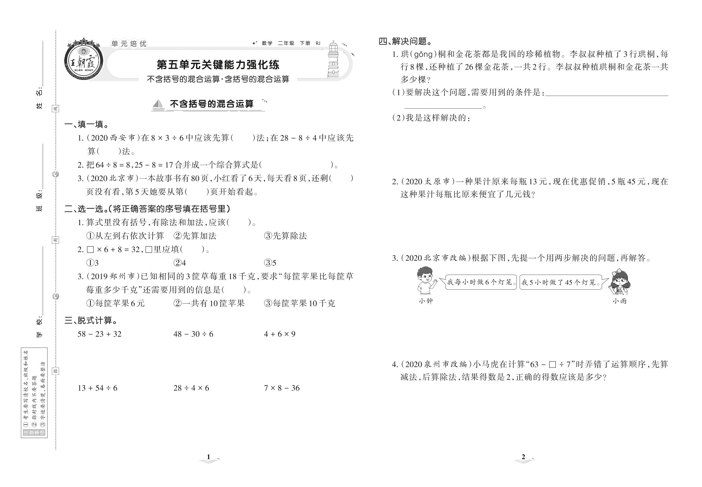 2021下册二年级数学人教版 第五单元 关键能力强化练