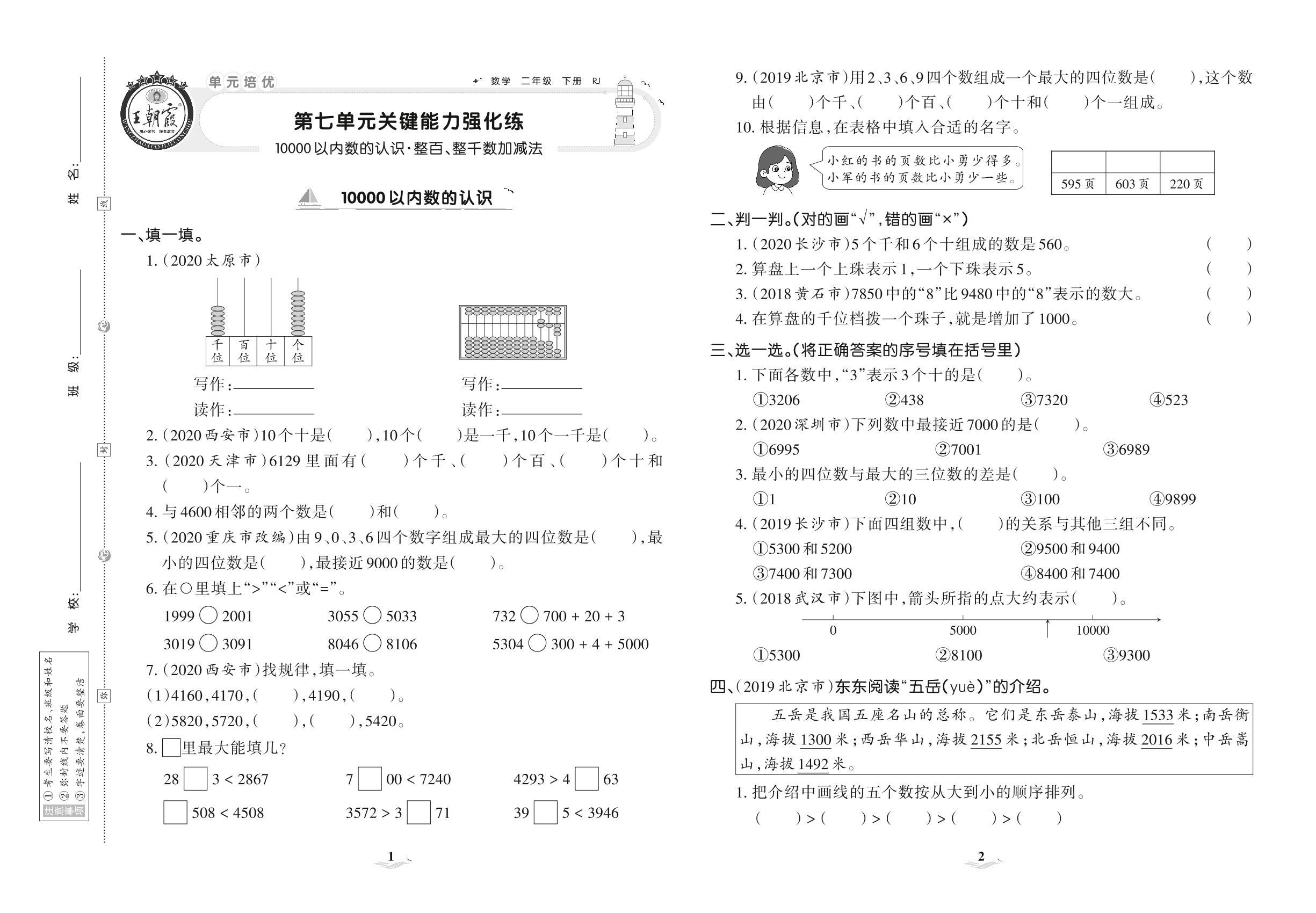 2021下册二年级数学人教版 第七单元 关键能力强化练