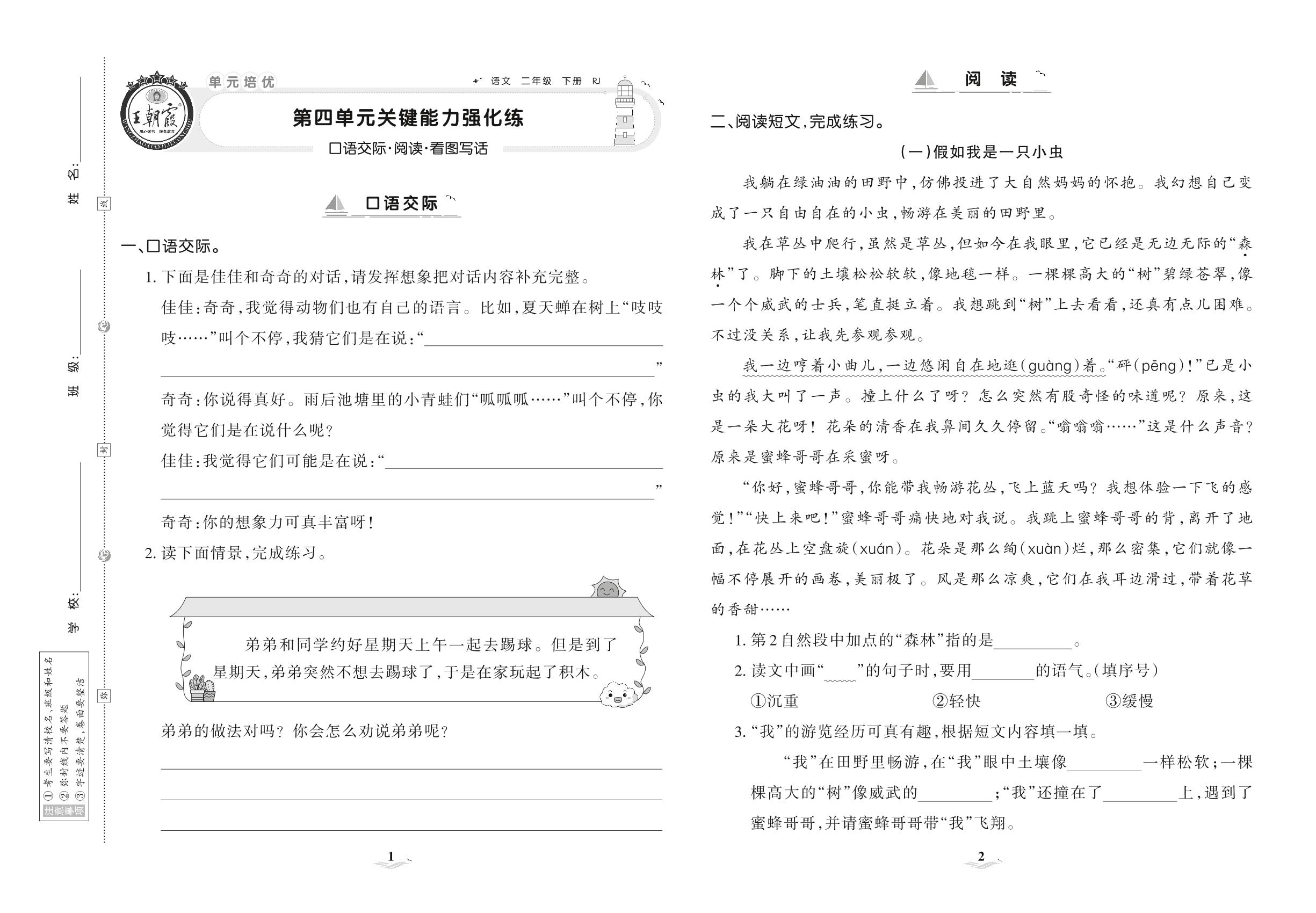 2021下册二年级语文人教版 第四单元 关键能力强化练