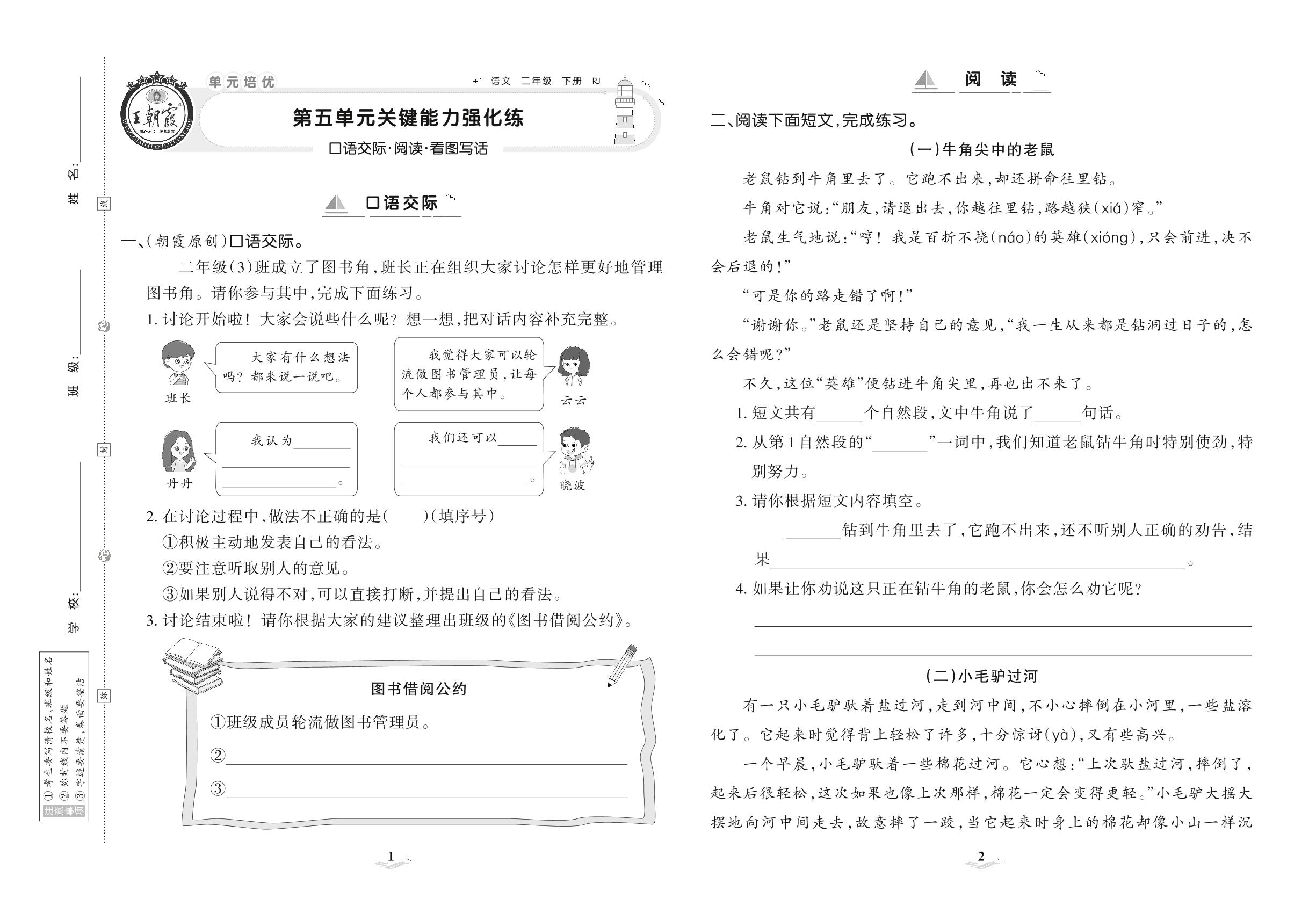 2021下册二年级语文人教版 第五单元 关键能力强化练