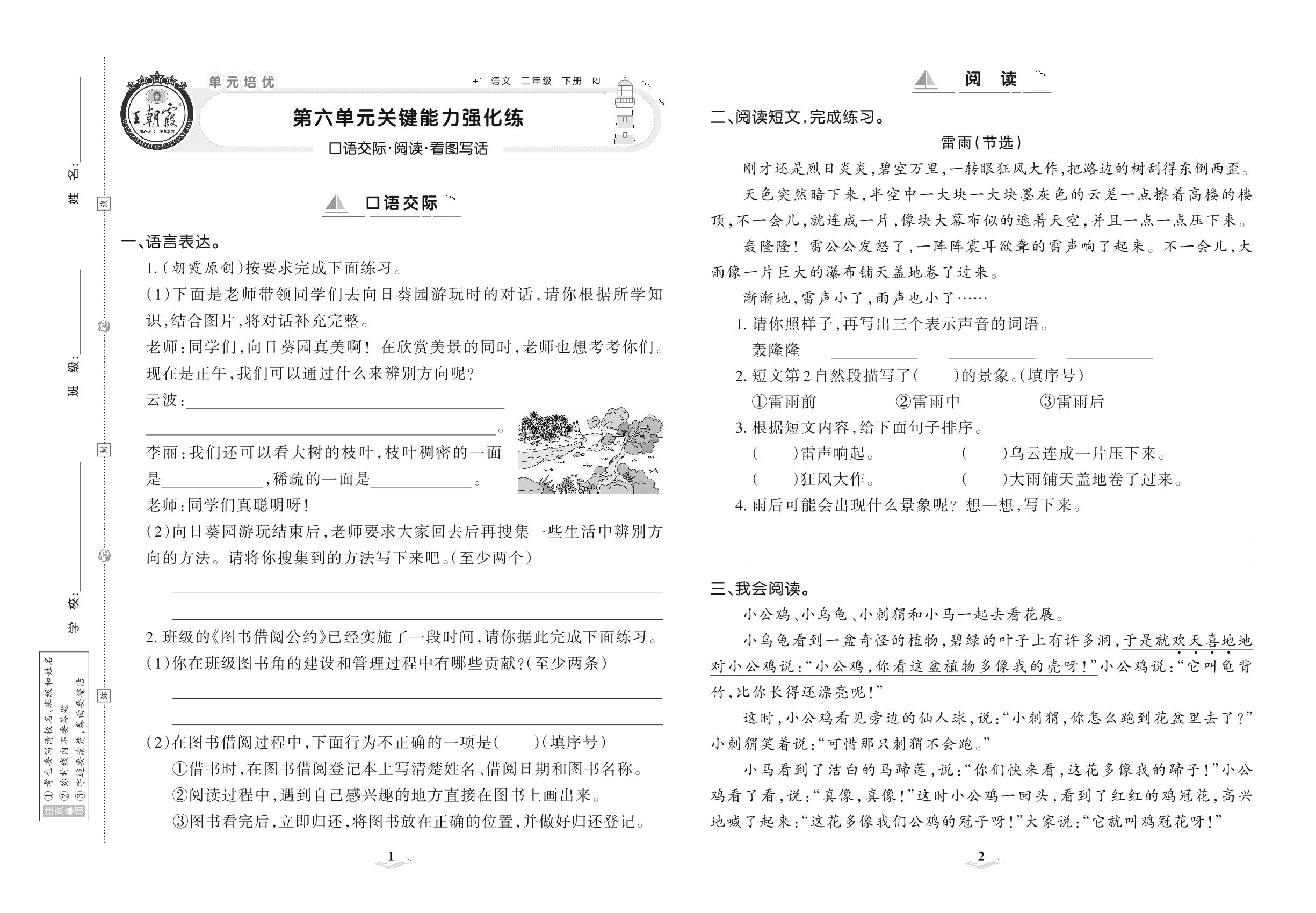 2021下册二年级语文人教版 第六单元 关键能力强化练