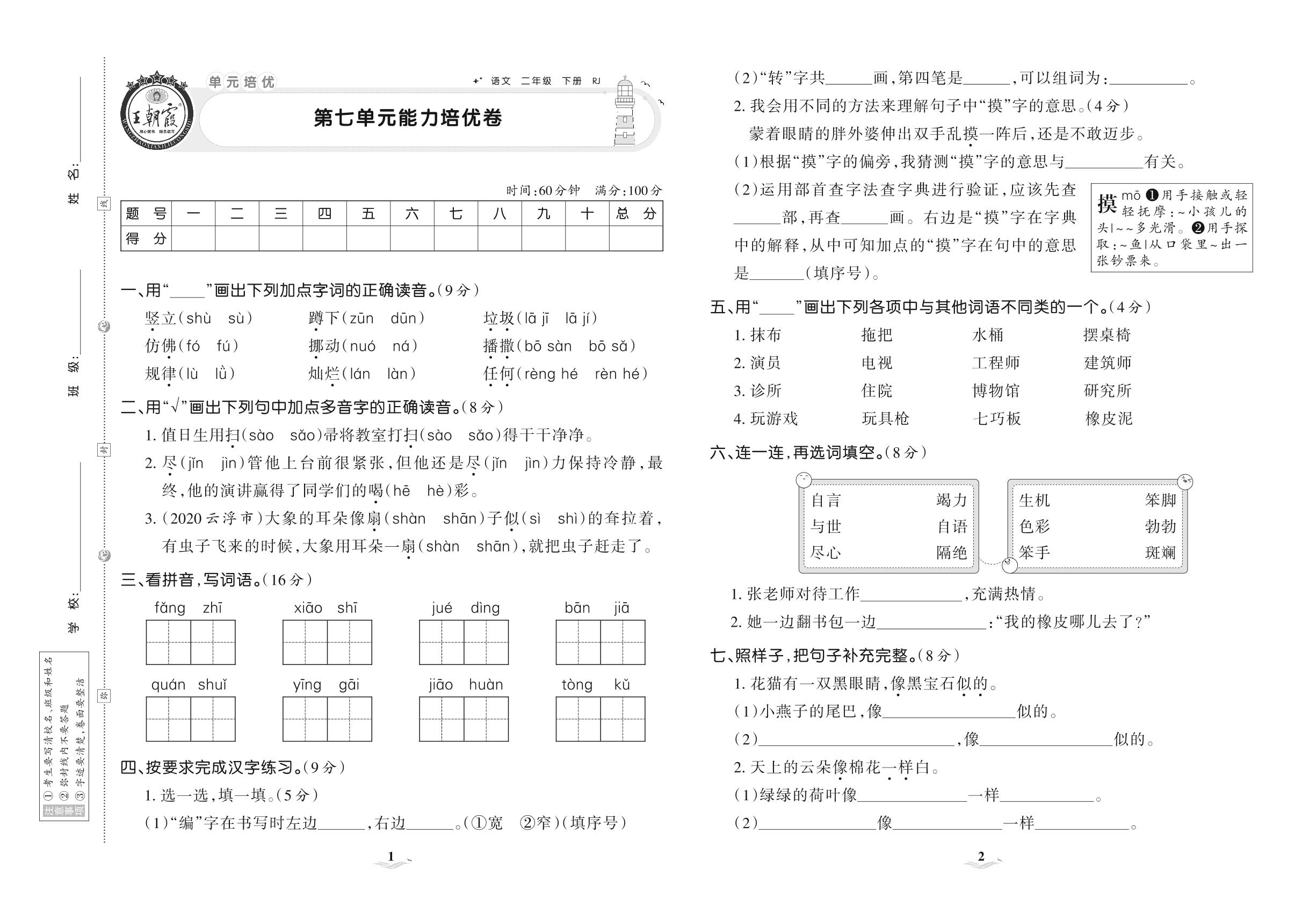 2021下册二年级语文人教版 第七单元 能力培优卷