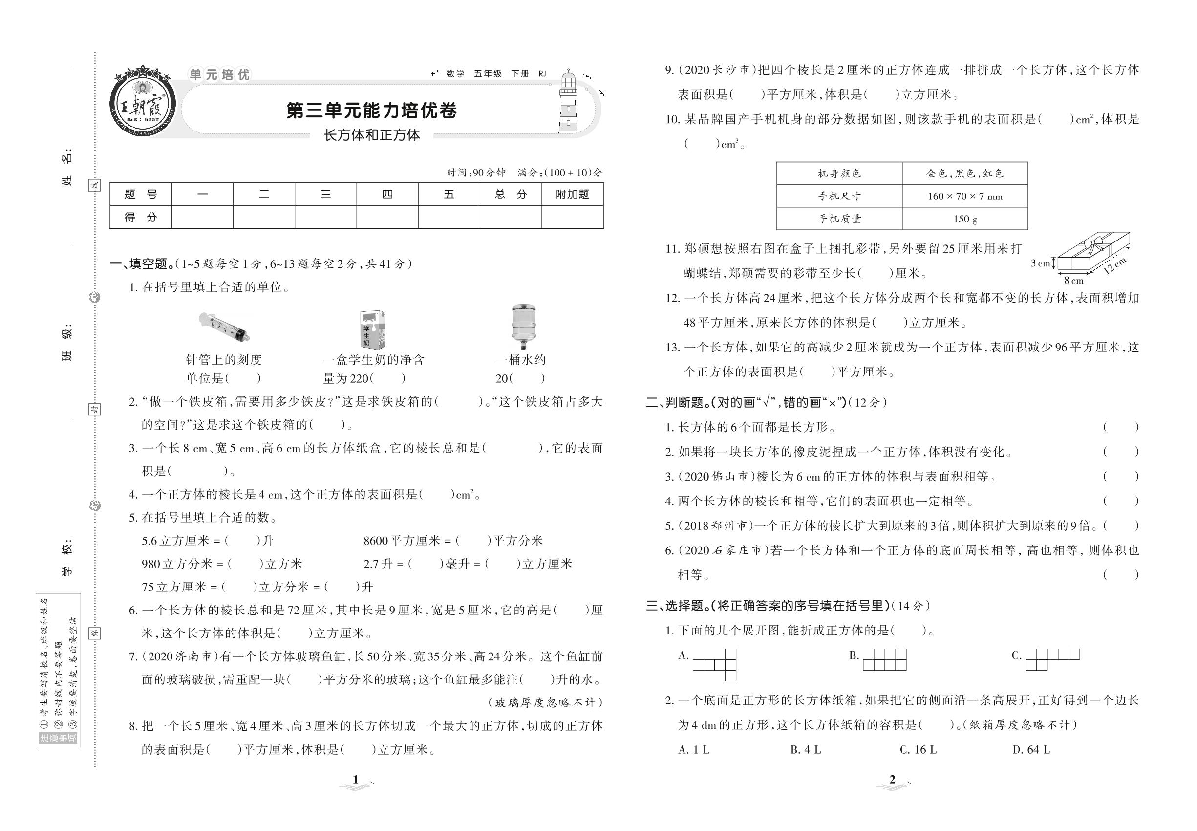 2021下册五年级数学人教版 第三单元 能力培优卷