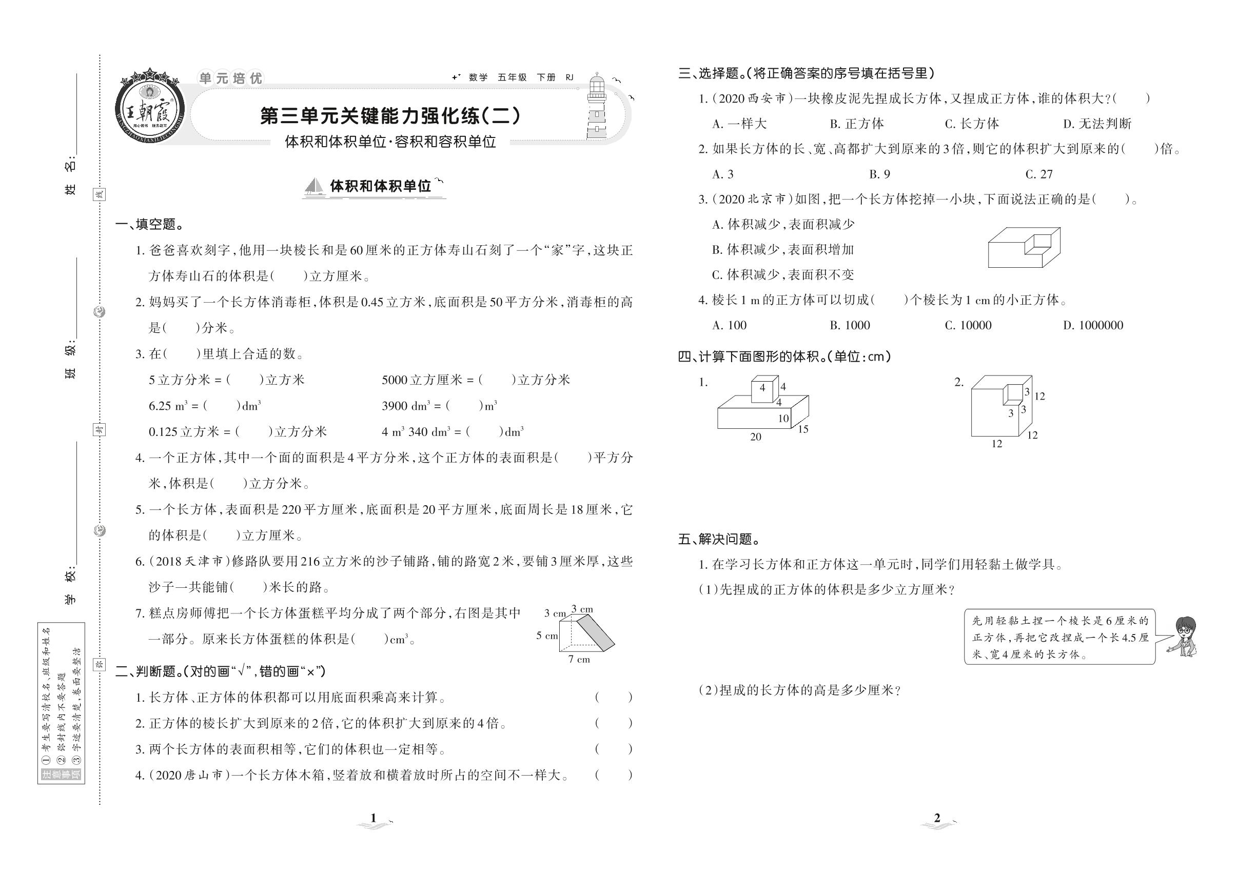 2021下册五年级数学人教版 第三单元 关键能力强化练(二)