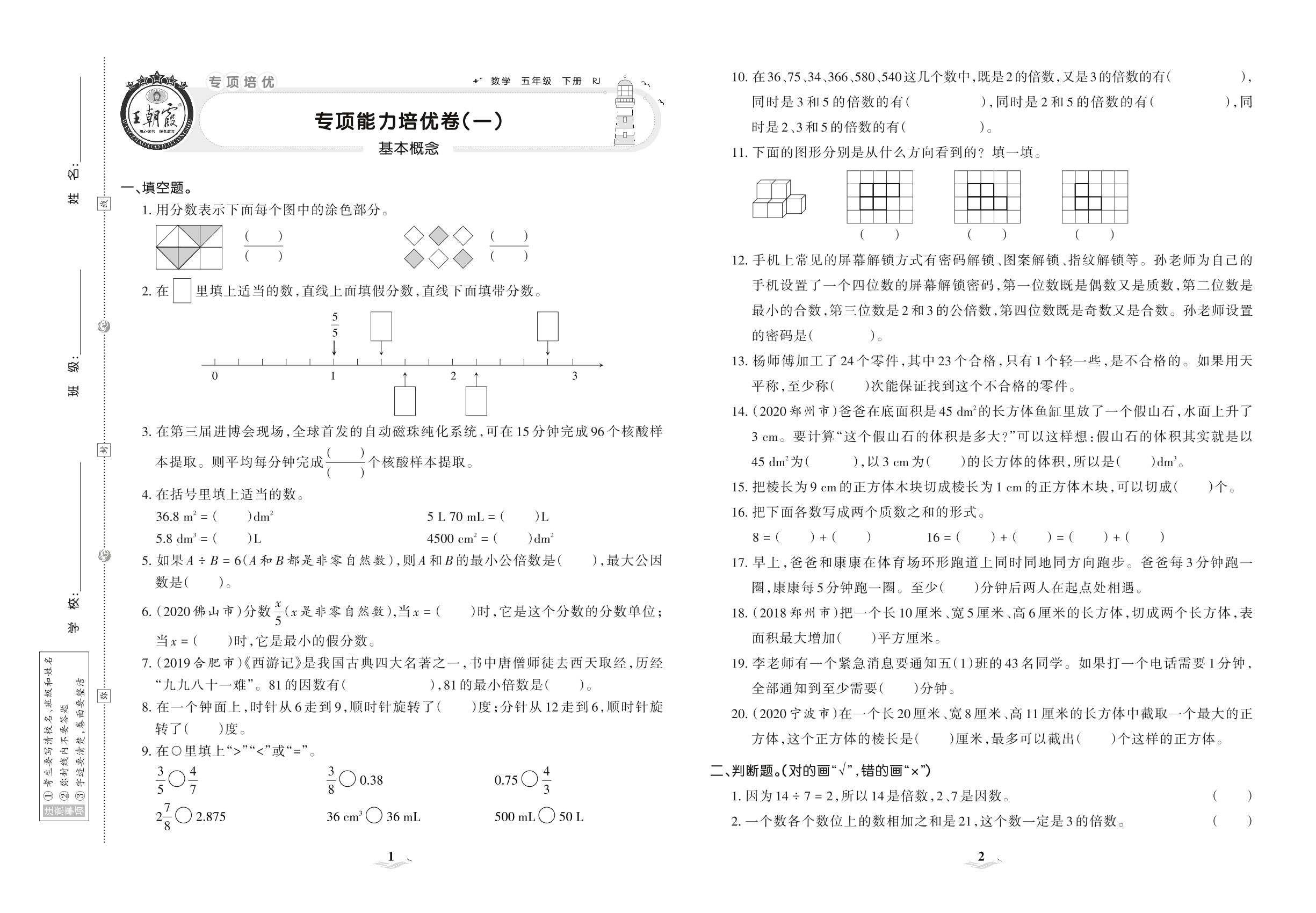 2021下册五年级数学人教版 专项能力培优卷(一) 基本概念