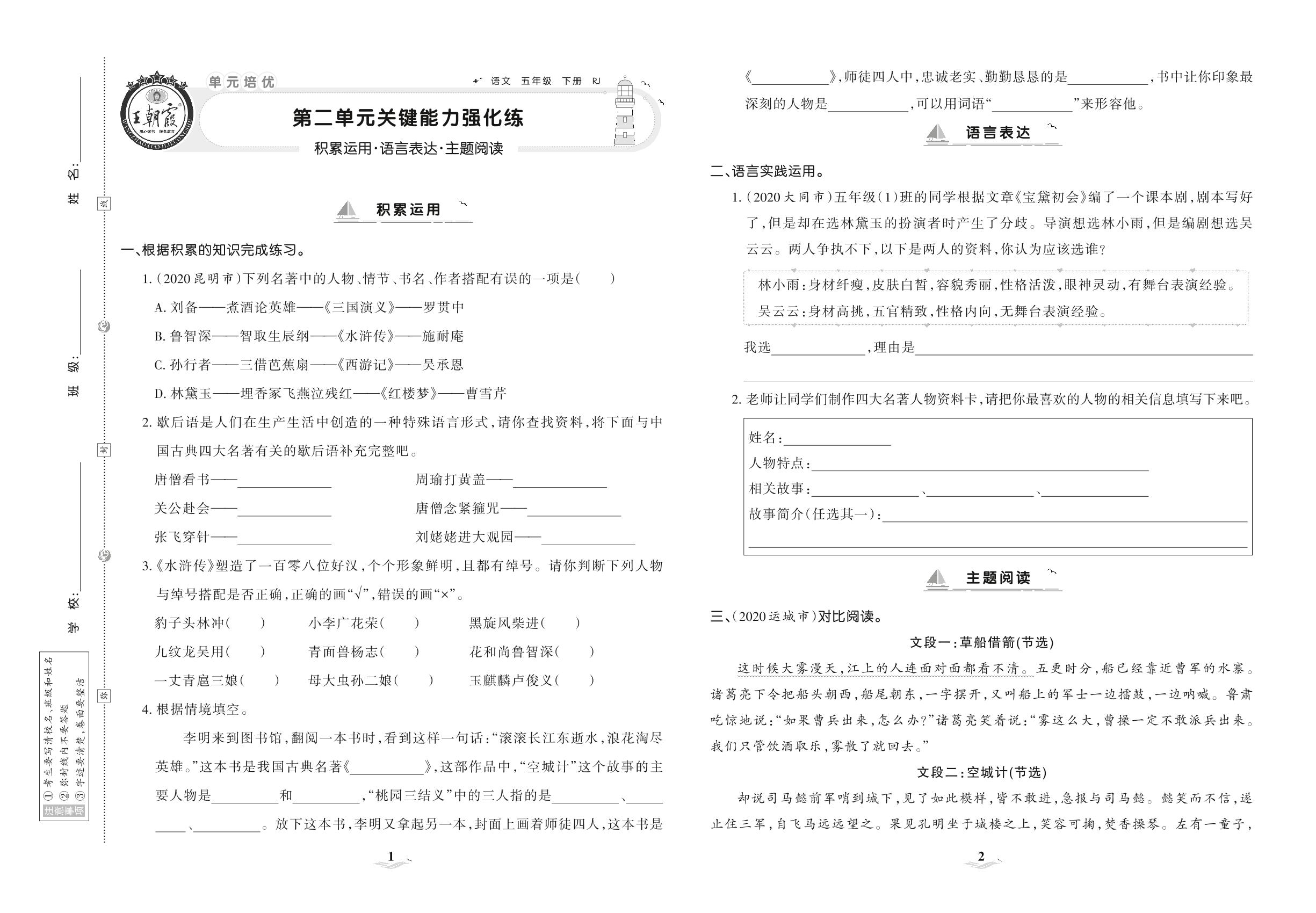 2021下册五年级语文人教版 第二单元 关键能力强化练