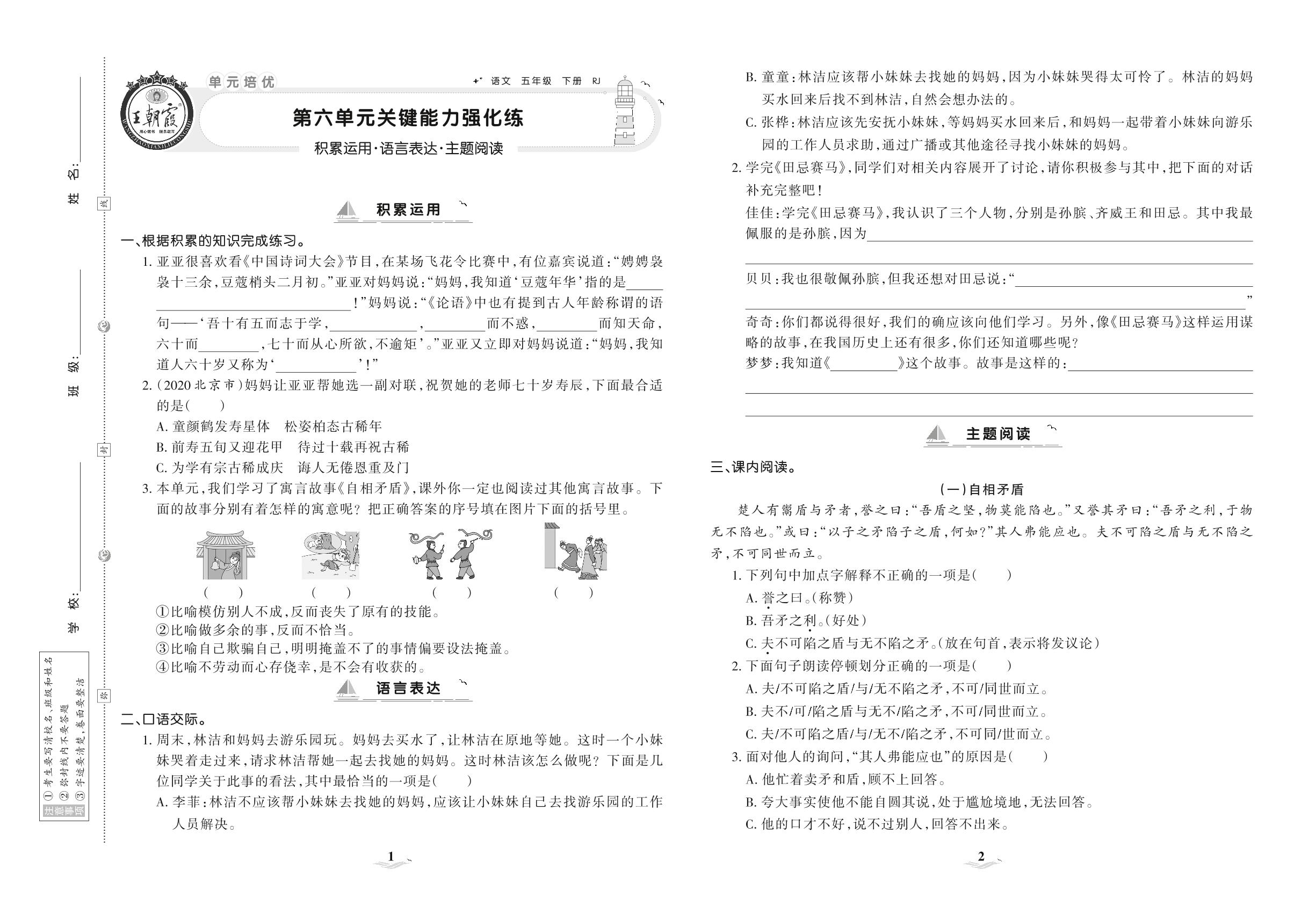 2021下册五年级语文人教版 第六单元 关键能力强化练