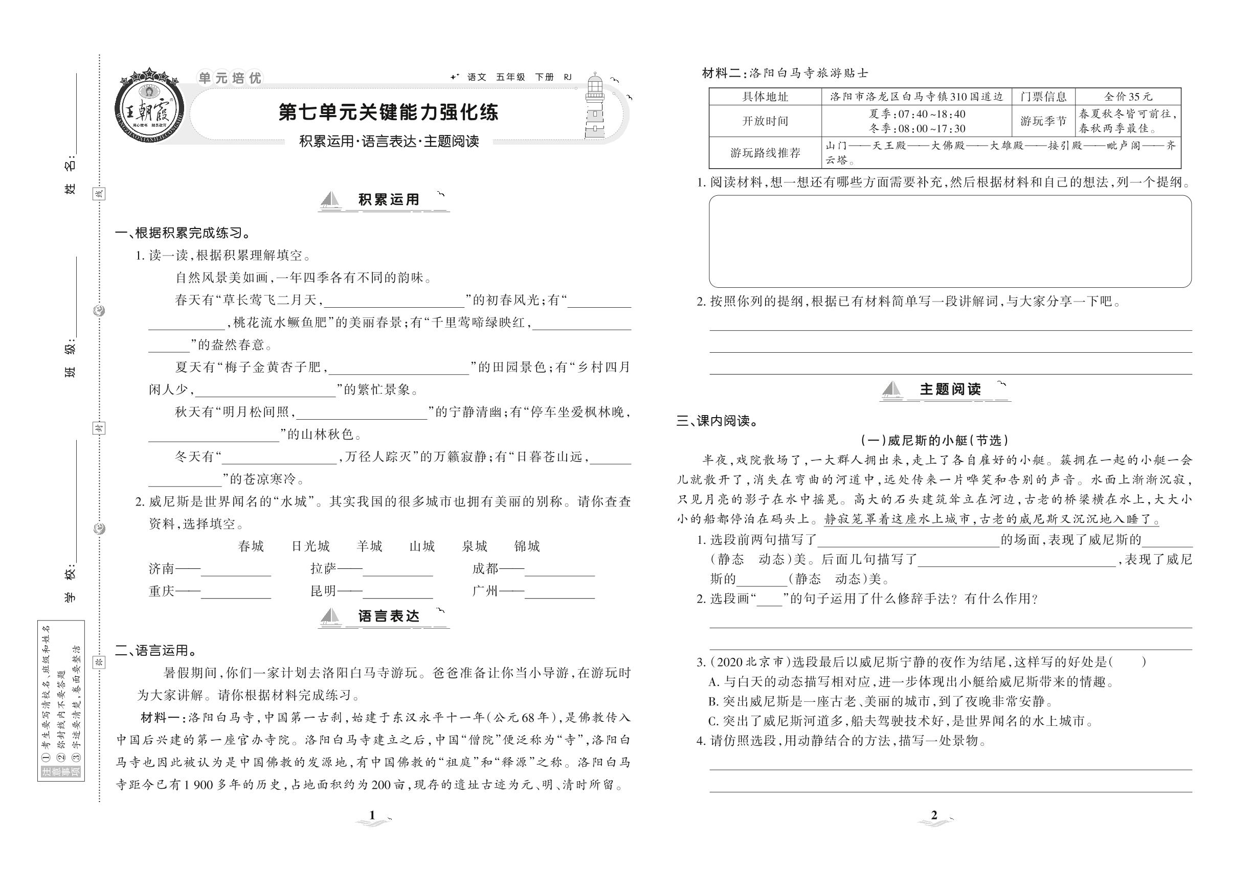 2021下册五年级语文人教版 第七单元 关键能力强化练