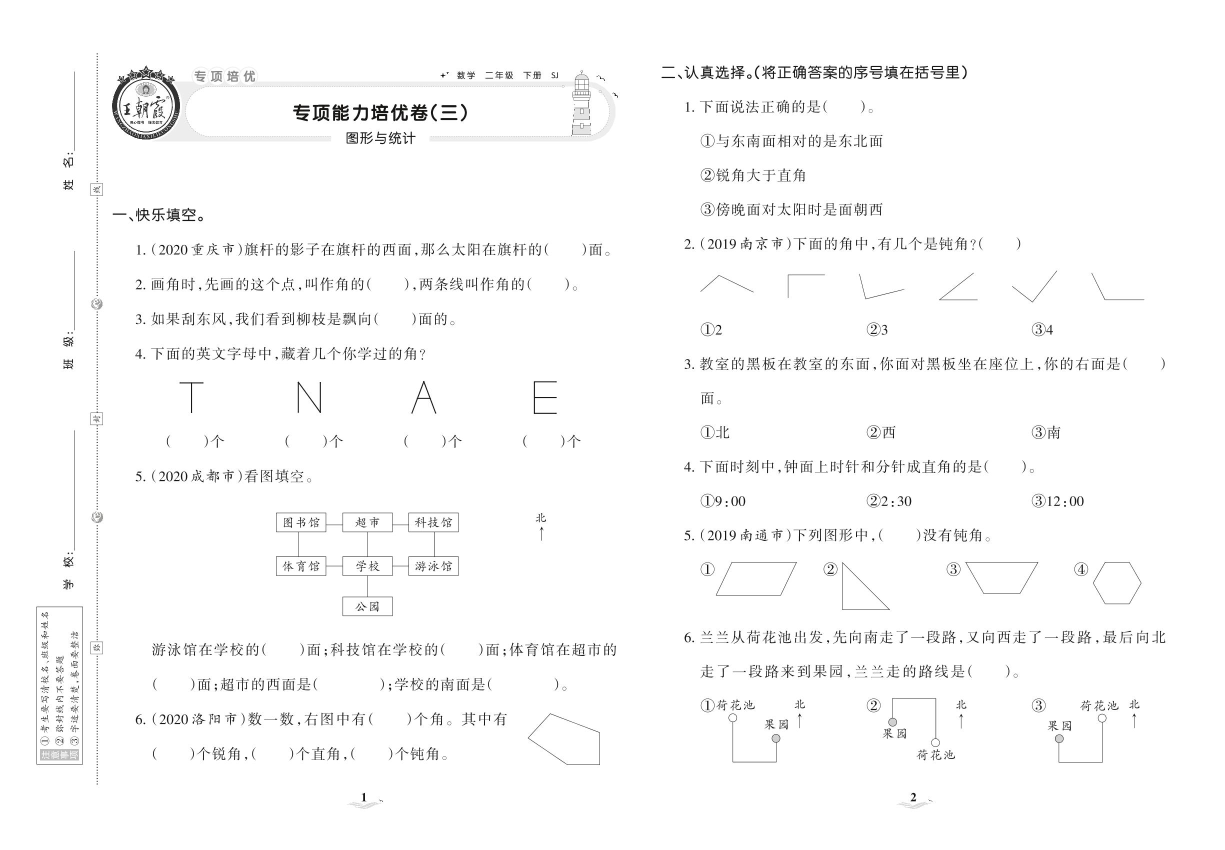 2021下册二年级数学苏教版 专项能力培优卷(三) 图形与统计