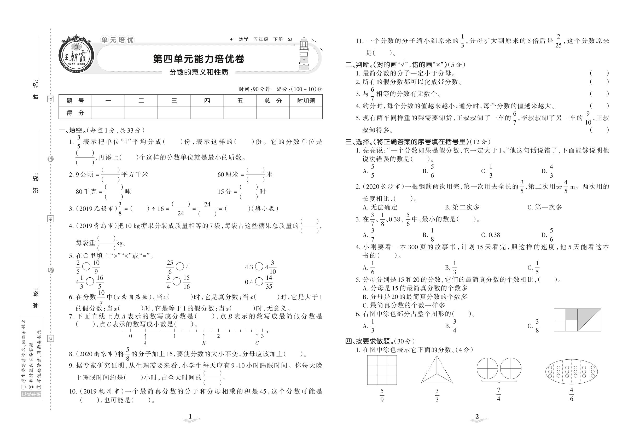 2021下册五年级数学苏教版 第四单元 能力培优卷