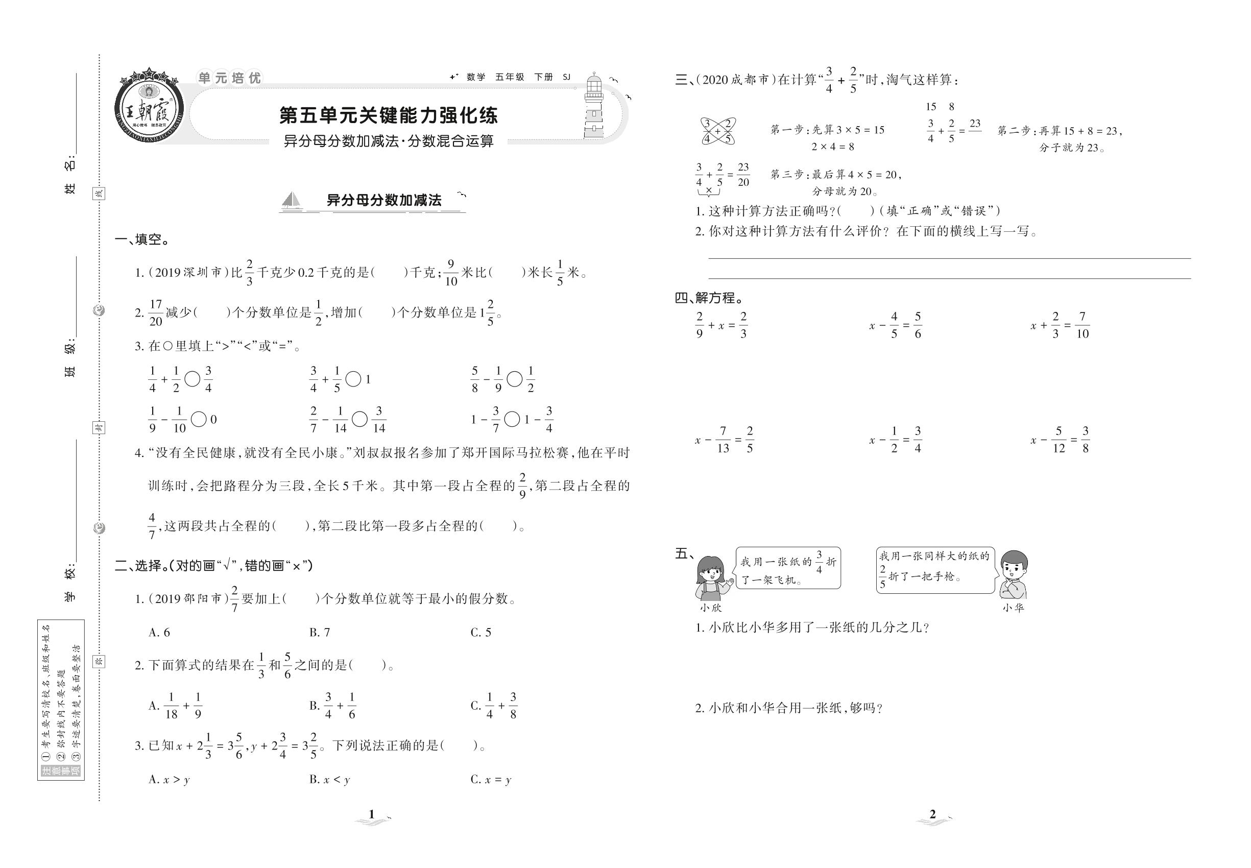 2021下册五年级数学苏教版 第五单元 关键能力强化练