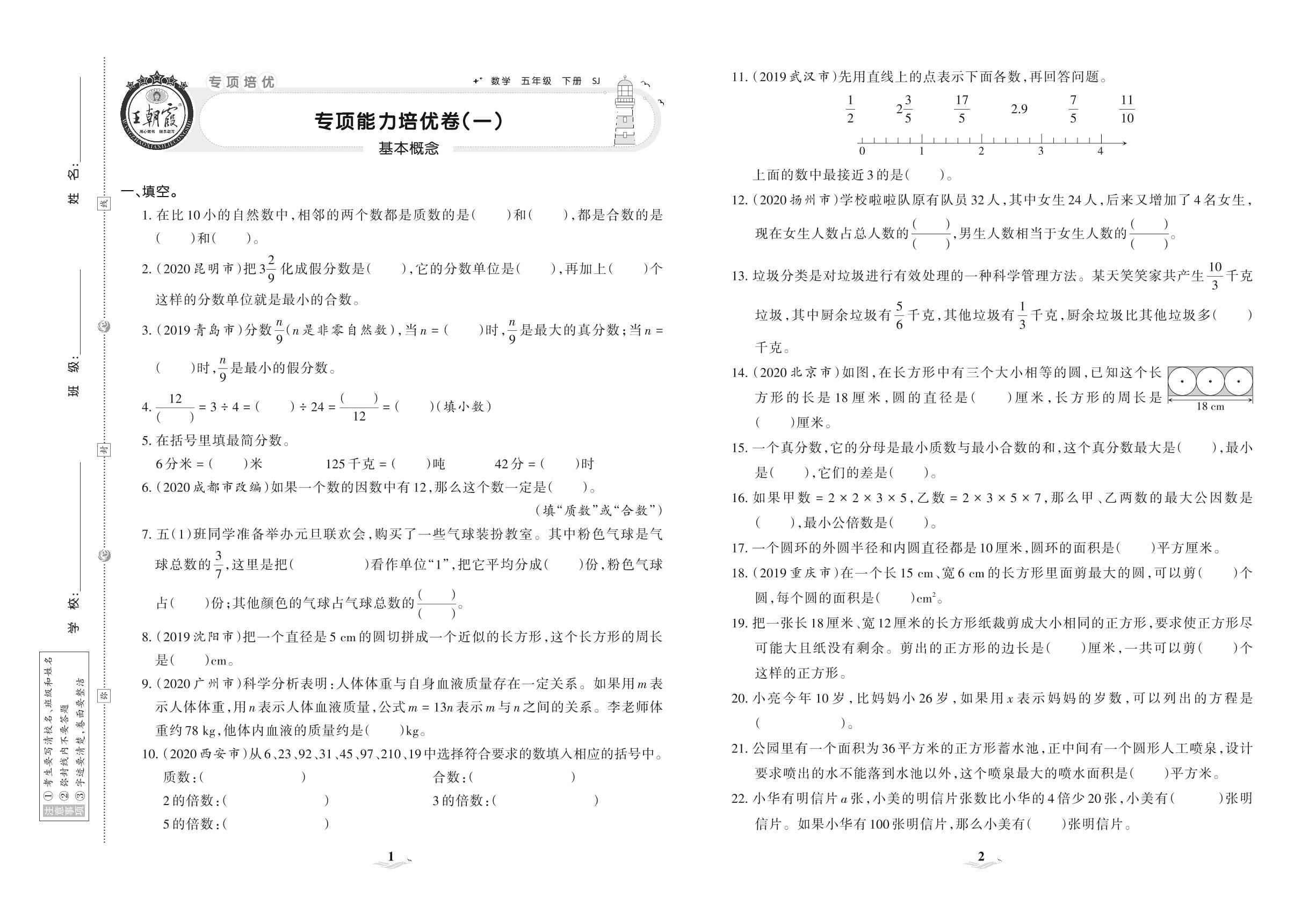 2021下册五年级数学苏教版 专项能力培优卷(一) 基本概念