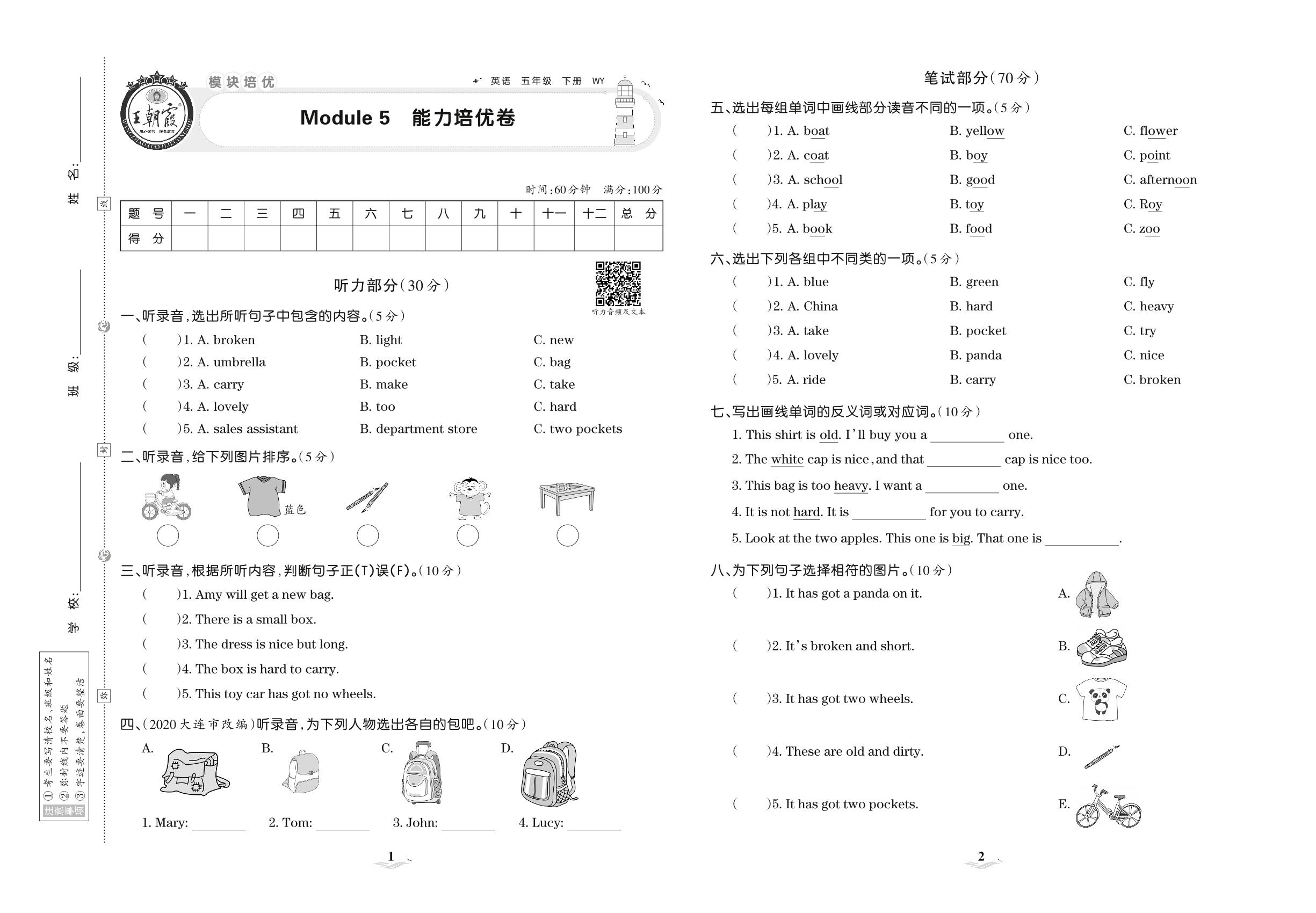 2021下册五年级英语外研版 Module 5 能力培优卷
