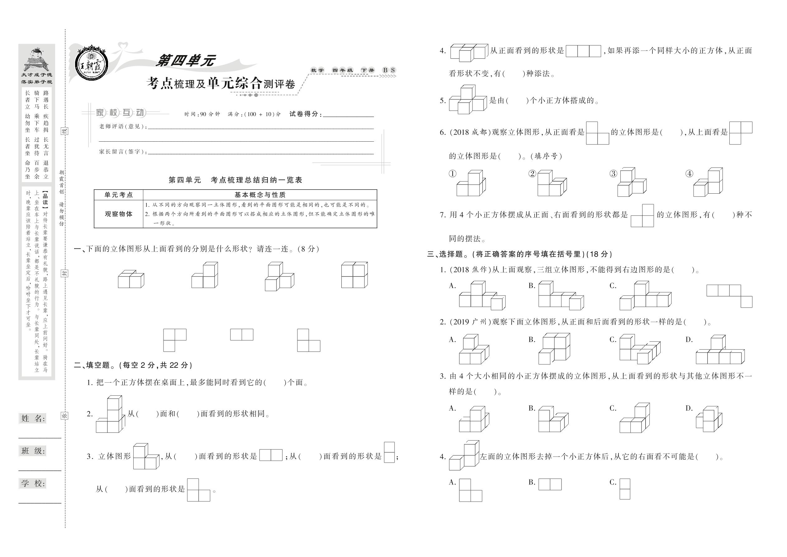 2021下册四年级数学北师版 第四单元 考点梳理及单元综合测评卷