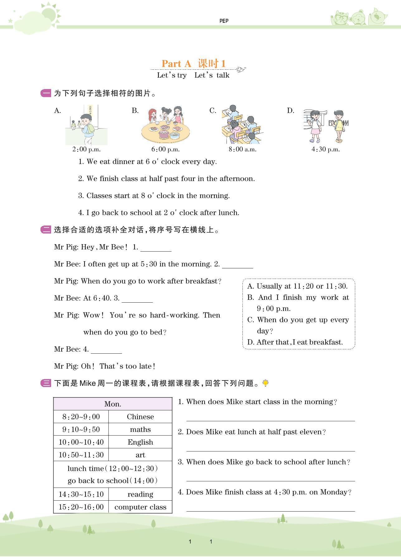 2021下册五年级英语PEP版 Unit 1 Part A—课时 1 Let’s try Let’s talk