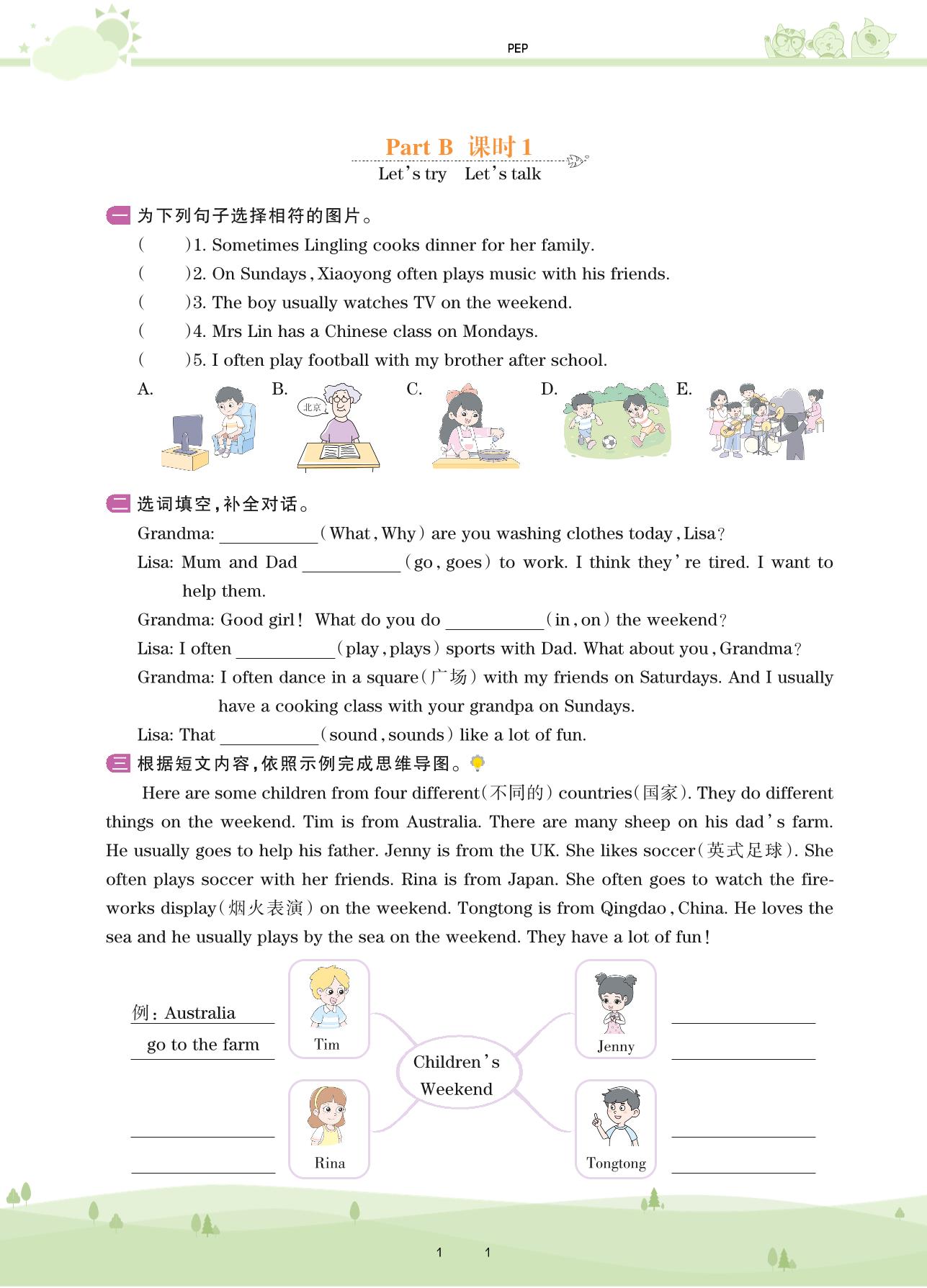 2021下册五年级英语PEP版 Unit 1 Part B—课时 1 Let’s try Let’s talk
