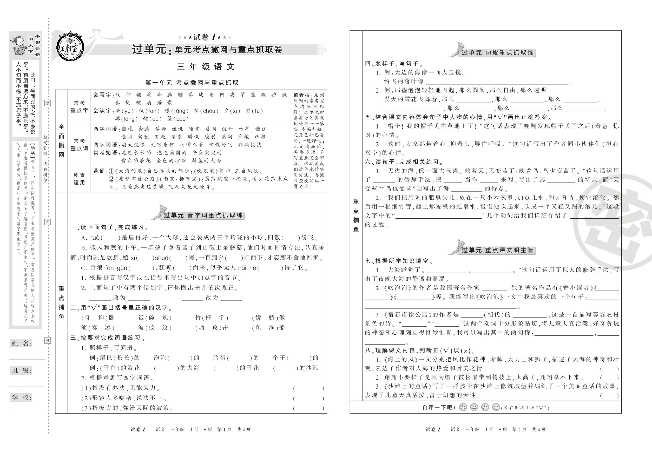 王朝霞期末专项卷三年级上册语文(S版)_R210801101627【1】