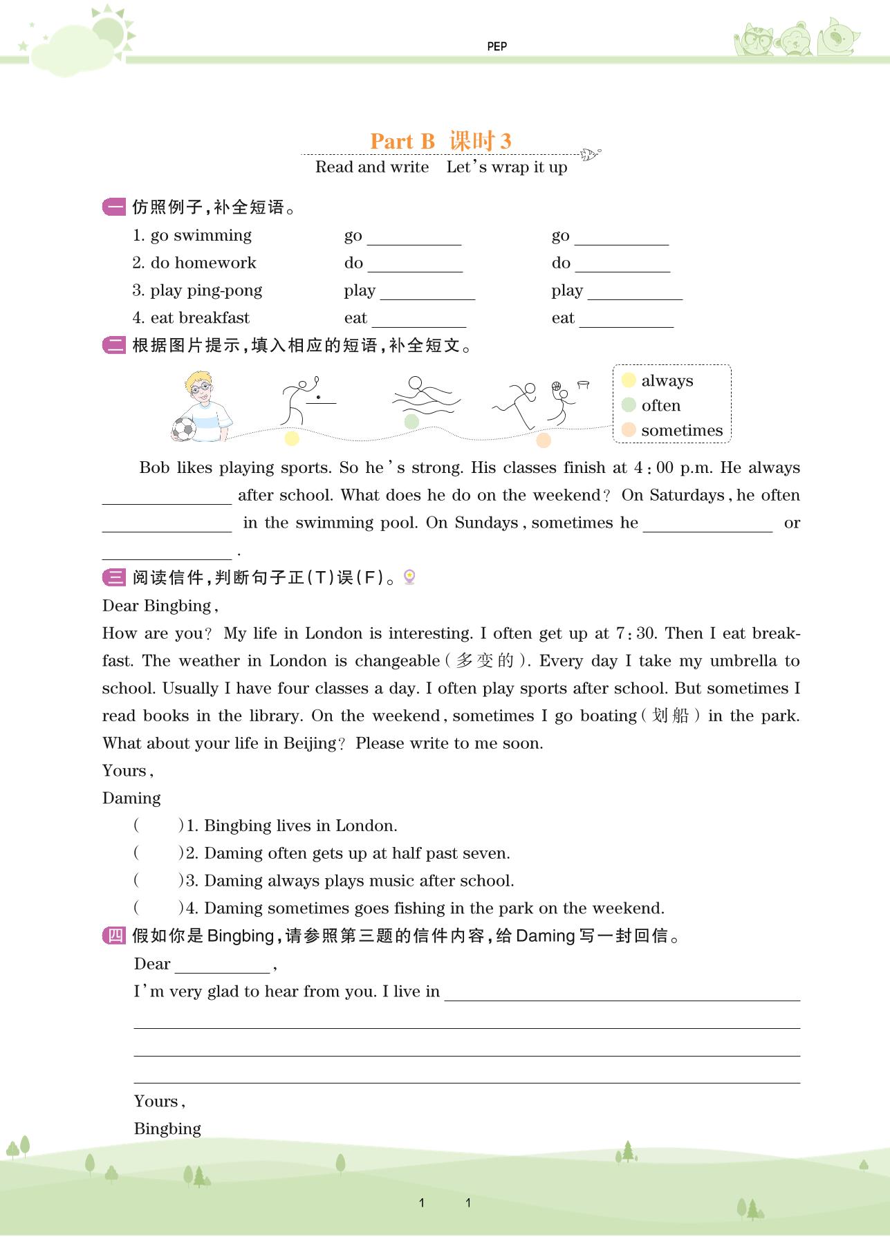 2021下册五年级英语PEP版 Unit 1 Part B—课时 3 Read and write Let’s wrap it up